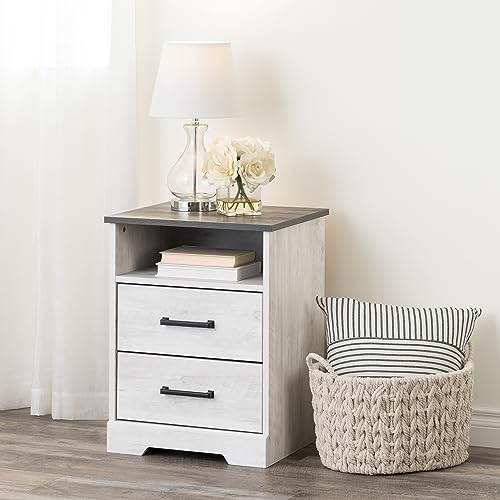 Prepac Rustic Ridge Farmhouse Nightstand with 2 Drawers and an Open Cubby, Wooden Bedside Table for Bedroom, Office, or Living Room, 16.25in x 18.75in x 24.5in, Washed White