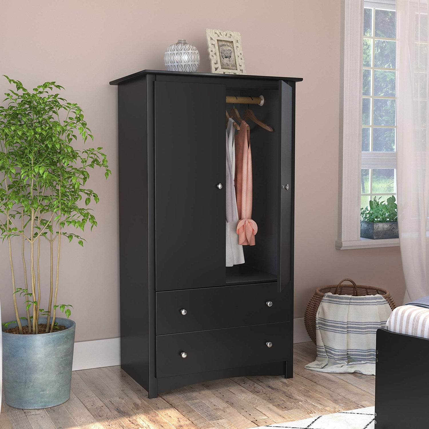 Prepac Sonoma Wardrobe Cabinet: Armoire Dresser for Bedroom with Adjustable Shelf. Features 2-Door Wardrobe Closet & 2 Drawers, Ideal Closet for Bedroom, 22"Dx31.5"Wx58.75"H, Black - BDC-3359-K
