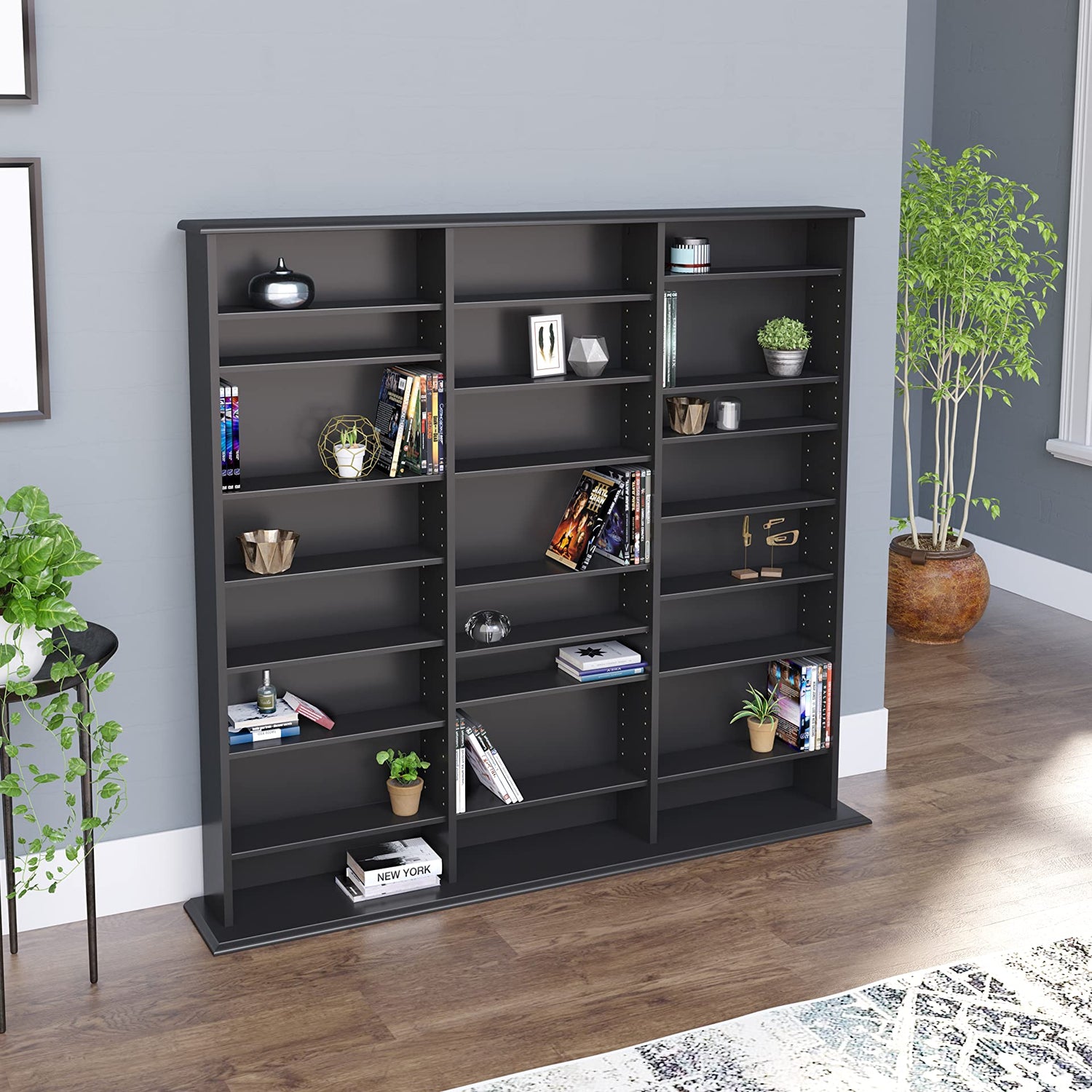 - Fully adjustable shelves and horizontal media storage allows for easy sorting, filing, and re-filing of a growing collection
