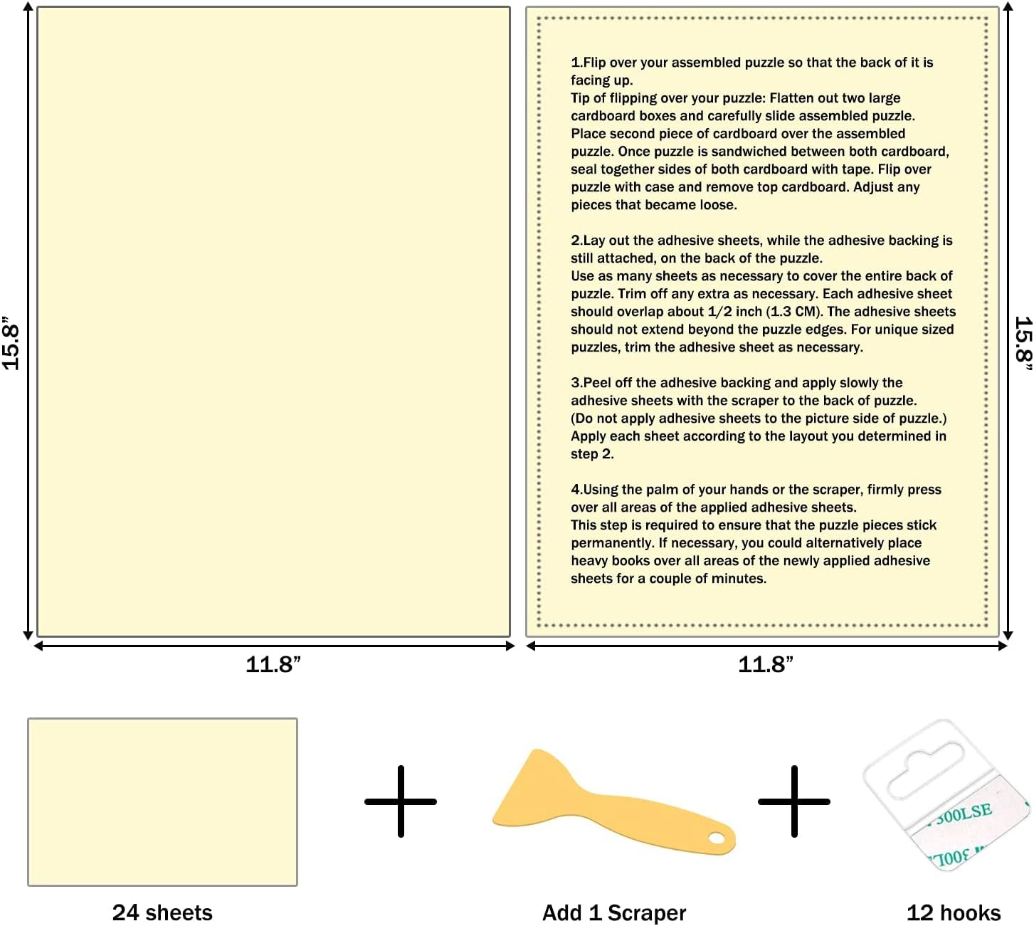- 【Easy to Handle】Transparent and high-quality, takes only minutes. Simply peel the backing from the puzzle sticker sheets and stick to the back of your finished puzzle. The included scraper could help you use puzzle glue sheets better. Included wall hangers could help you hang your puzzles.