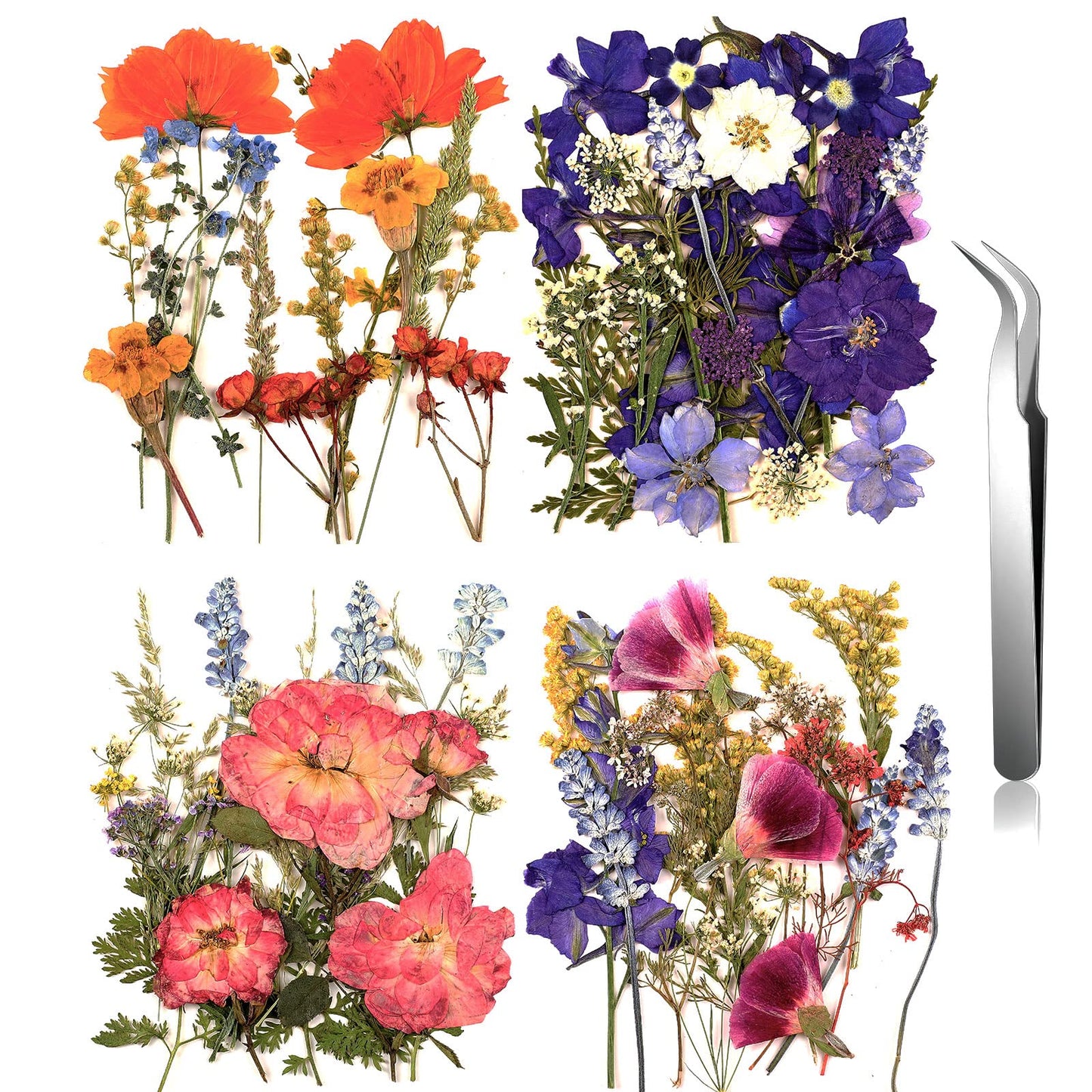 • Package details: this package comes with 68 pieces of real dried pressed flowers leaves and 1 piece of curved tweezers, the dried flowers come in different styles, you will be impressed by these beautiful plants