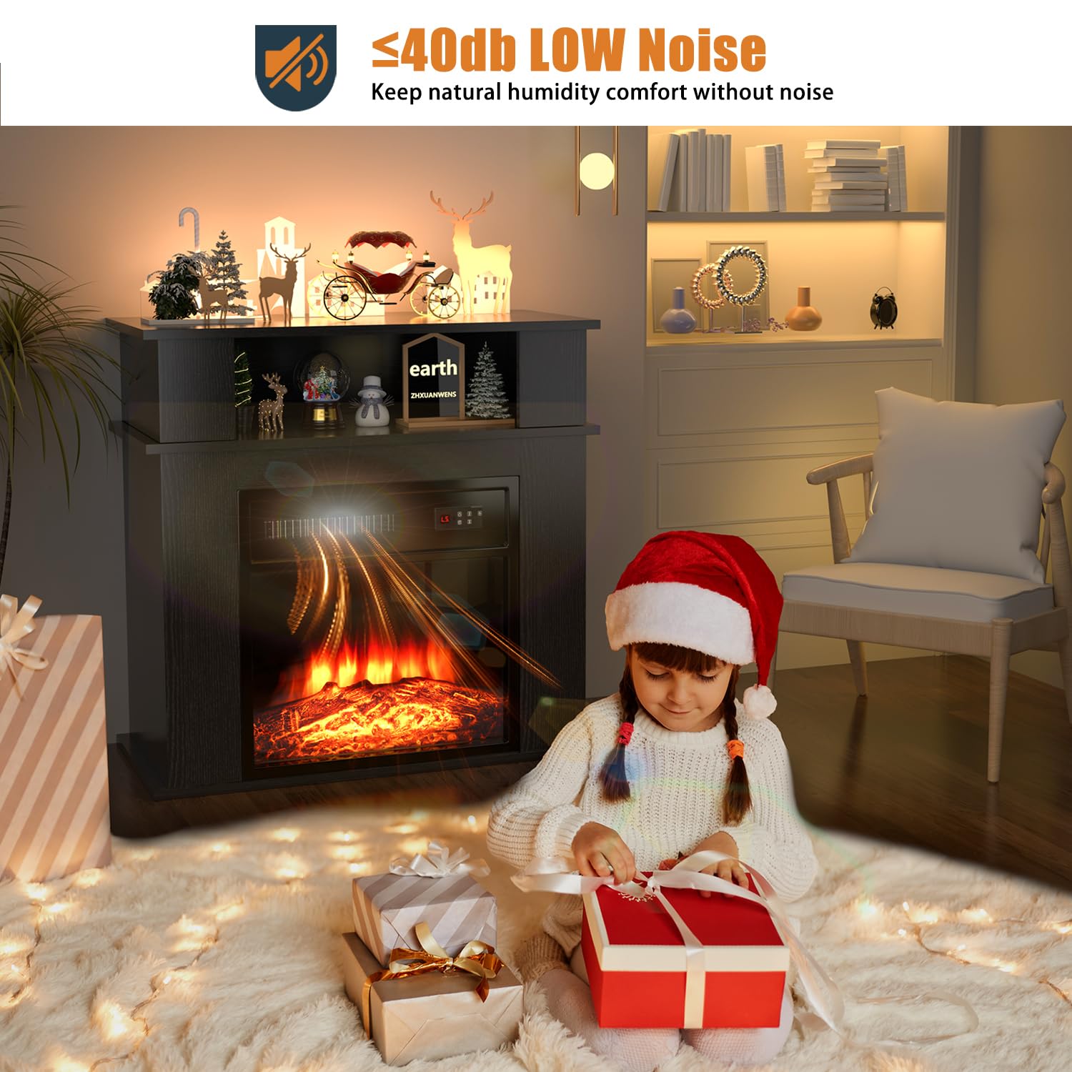 - Realistic 3D Flame: Gorgeous flames burn above realistic log fake wood, with 5 adjustable flame speeds and brightness to meet various needs. This freestanding fireplace of modern design gives you a beautiful visual impact, suitable for all interior Spaces