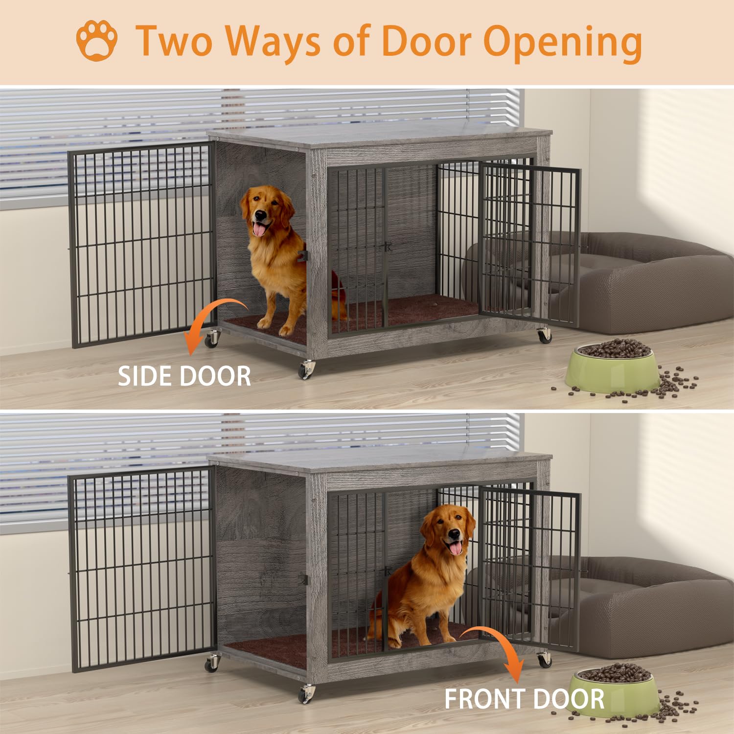 - Kennel with 4 Wheels: The dog cage sits on 4 wheels (2 with brakes) so it can be easily moved around your home. Say goodbye to heavy lifting, allowing flexible placement according to your preferences. It offers a secure, cozy space for years to come