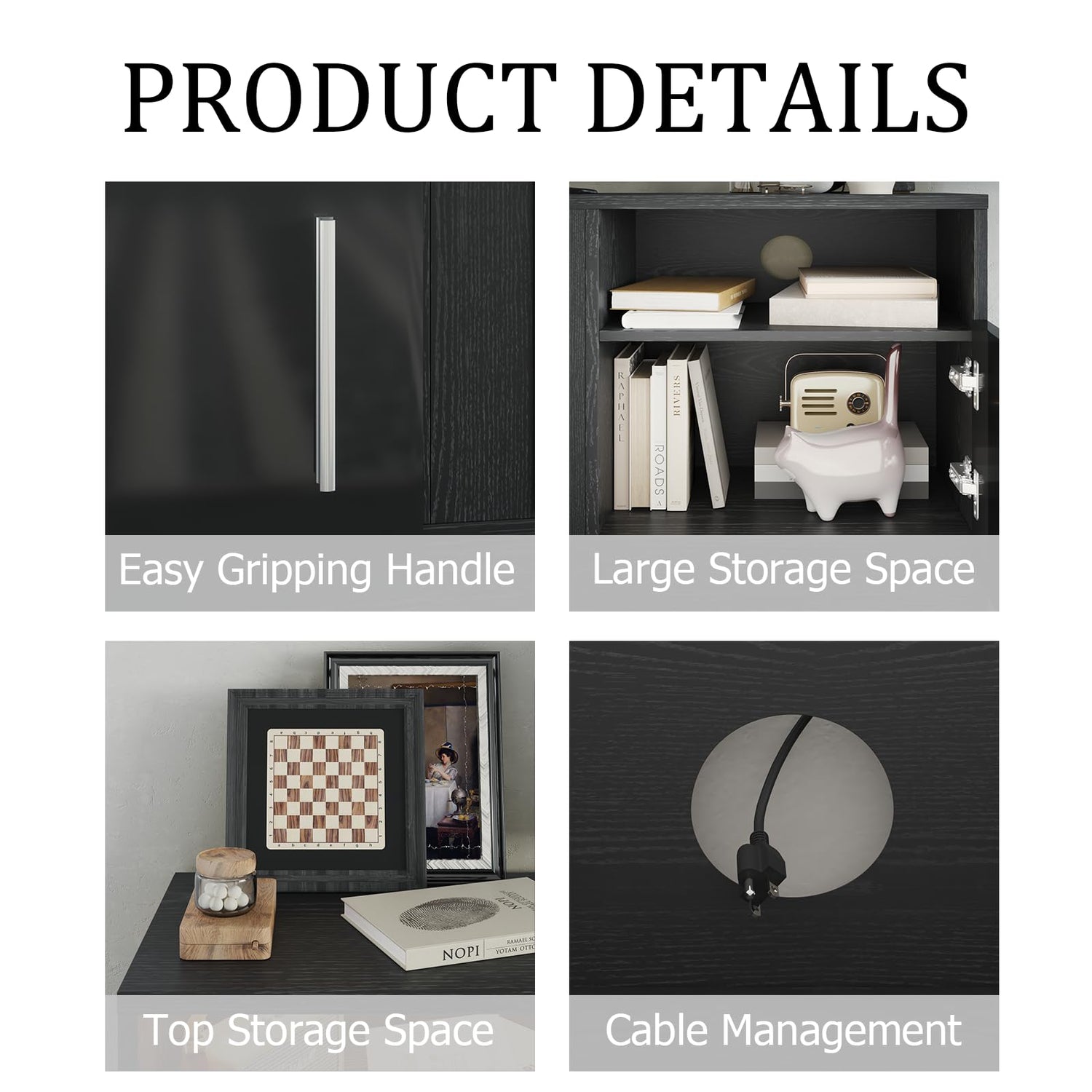 - 【LARGE STORAGE SPACE】:The tv stands for living room have 2 cabinets for storing gamepads, and 2 open shelves for displaying family photos. Additionally, there are cable holes on the back of the TV console table to hide cords. The TV stand can support up to 300Ibs for the table top. Plenty of storage space make your room more orderly and stylish