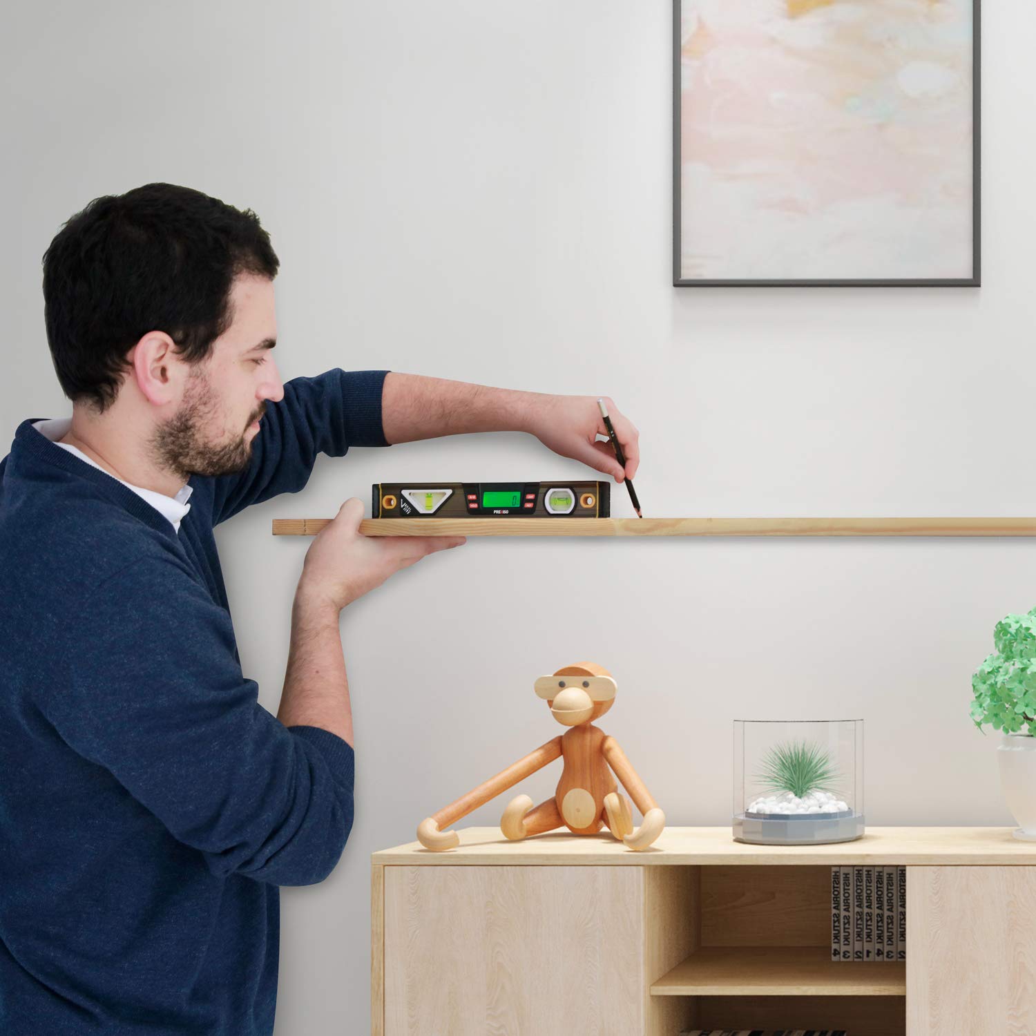 - Bright LCD Display: Large bright green LCD provides better visibility, so you can easily read your measurements all day and night, even in the darkest spaces. The display value reverses automatically when the electronic level is upside down