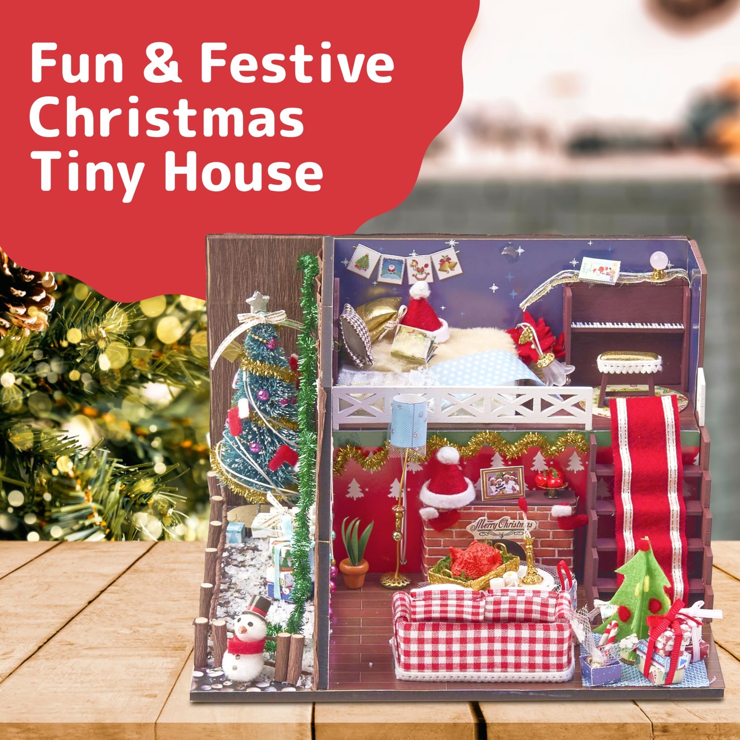 - Explore your creativity with this DIY Tiny House - Christmas Scene: Includes a comprehensive toolkit with alcohol glue, screwdriver, ruler, snowman and lights for an immersive building experience