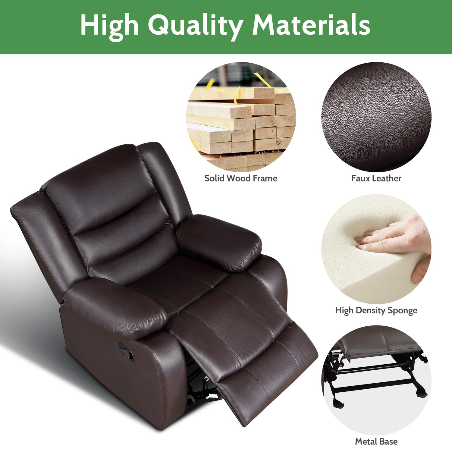 Prilinex Brown Rocker Recliner Chair - Oversized Leather Lazy Boy Recliner Chair with Overstuffed Armrest, Faux Leather Manual Reclining Chair for Living Room, Bedroom, Home Theater