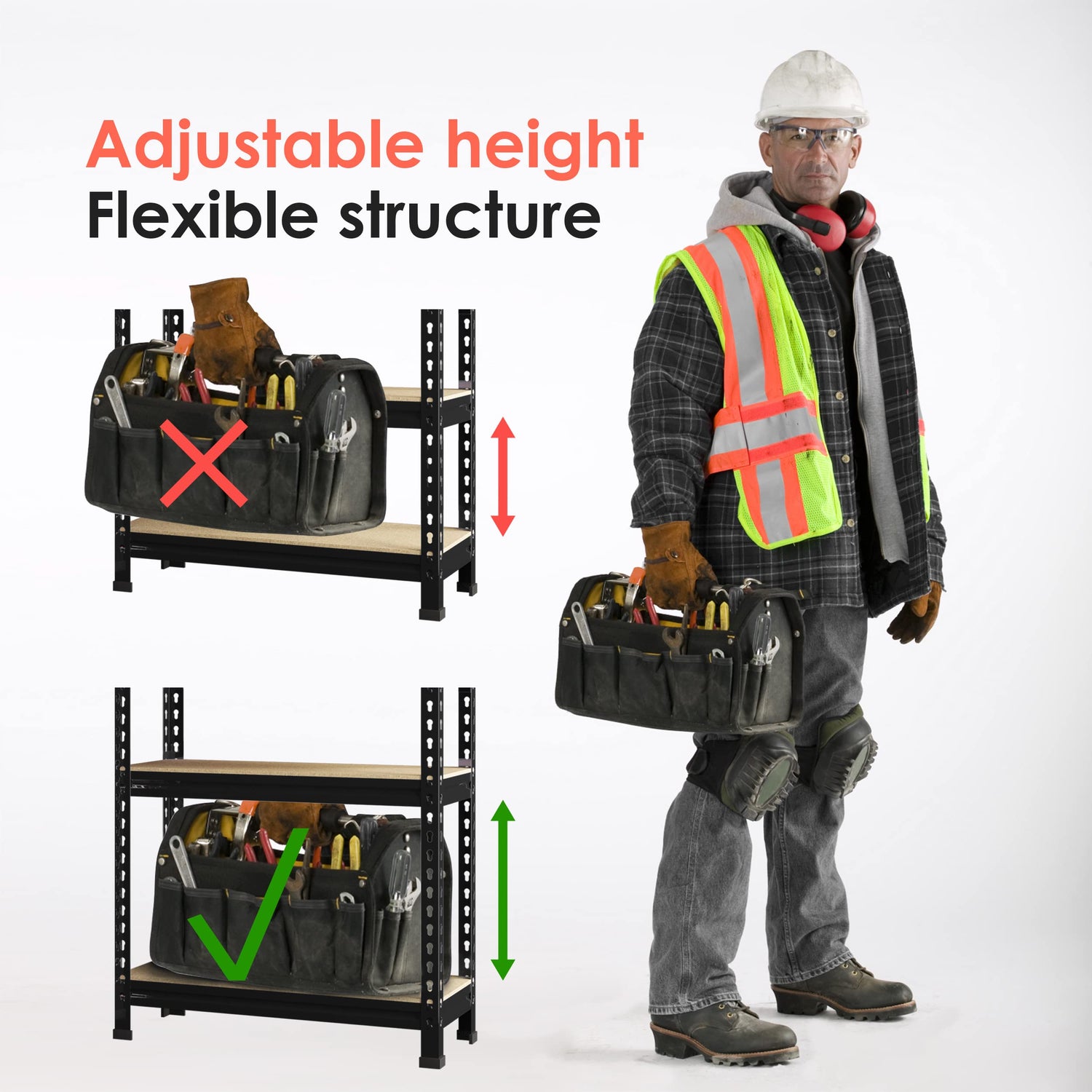 - 【 MULTIPURPOSE】 You can customize and combine several shelving units according to your needs. It can be built vertically as a shelving unit or horizontally as a workbench.This heavy duty storage shelves are suitable for many places, such as in the garage, warehouse, pantry, basement, shed, closet, kitchen, living room, office, etc