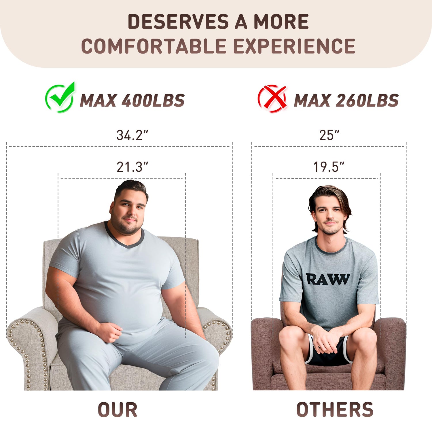 - 【Sturdy & Stable】-The upholstered armchair is made of a sturdy wooden frame, Net weight of 53.68 lbs, which is heavy duty than others. It can effortlessly support up to 400 lbs. The legs are constructed from strong rubber wood, and plastic spacers under the feet maintain stability and keep the armchair from sliding and scratching the floor. You can rely on this sturdy and reliable lounge chair for years to come.