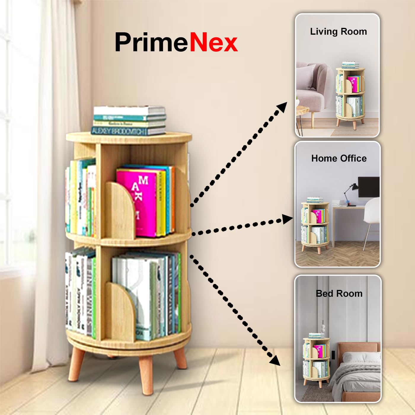 - ✅【360° Rotating Bookcase】PrimeNex Rotating Bookshelf offers a unique 360-degree revolving design, allowing easy access to take a book and put it away, display your books or decorations from any angle. It adds a touch of elegance and sophistication to any room decor.