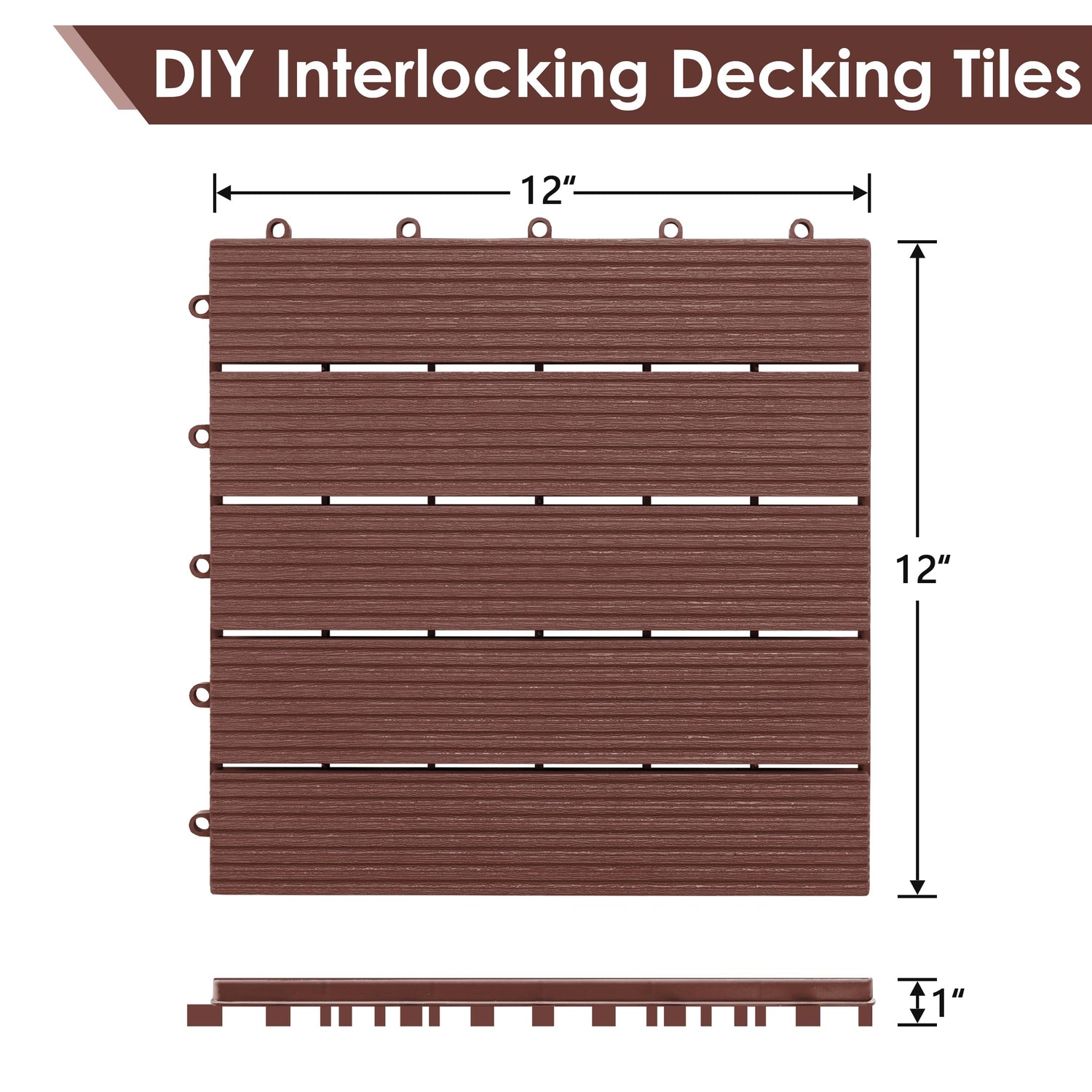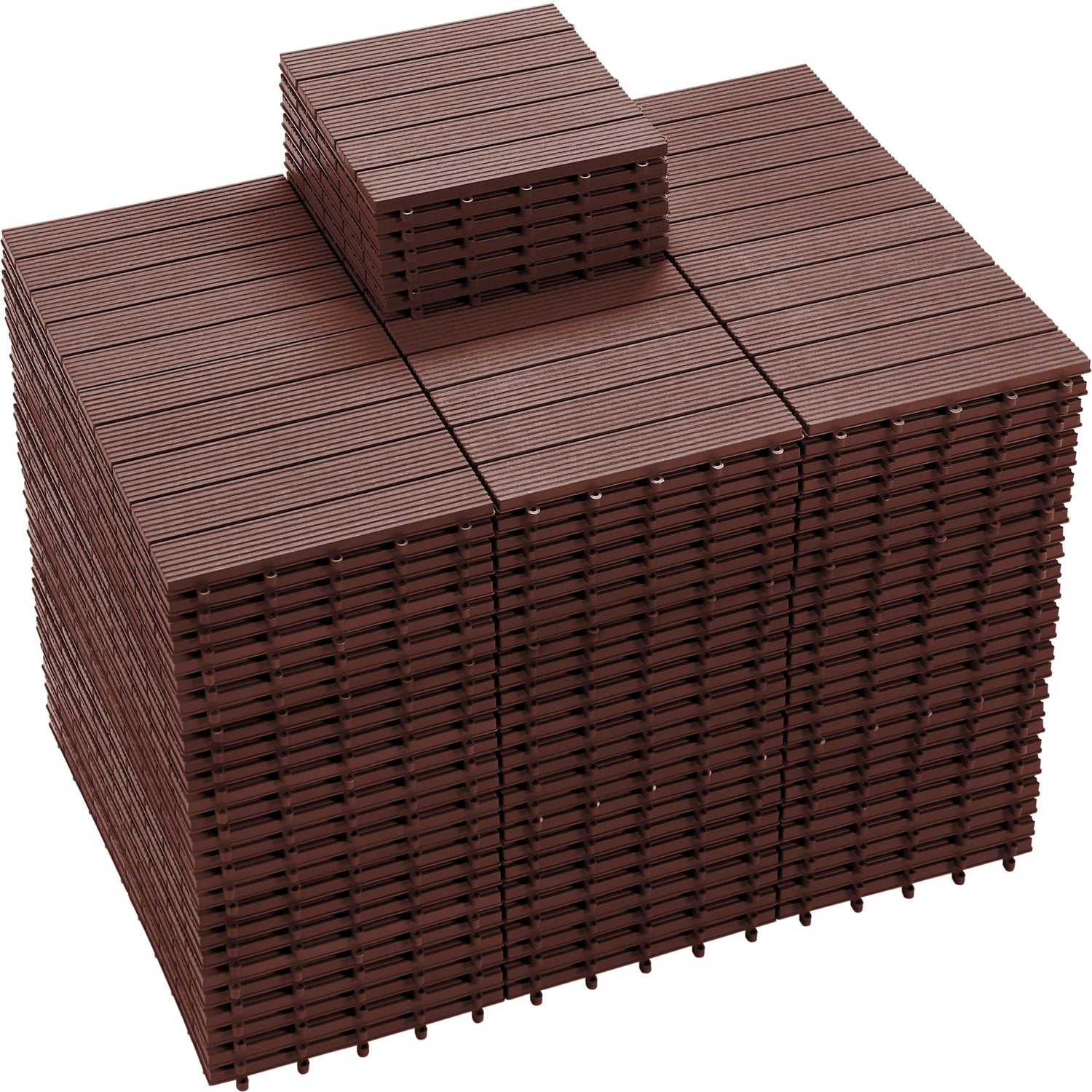 PrimeZone 162 PCS Plastic Interlocking Patio Deck Tiles - 12" x 12" Waterproof Indoor Outdoor Flooring, Patio Floor Decking for Balcony, Backyard, Garden & Poolside, All Weather Use, Dark Brown