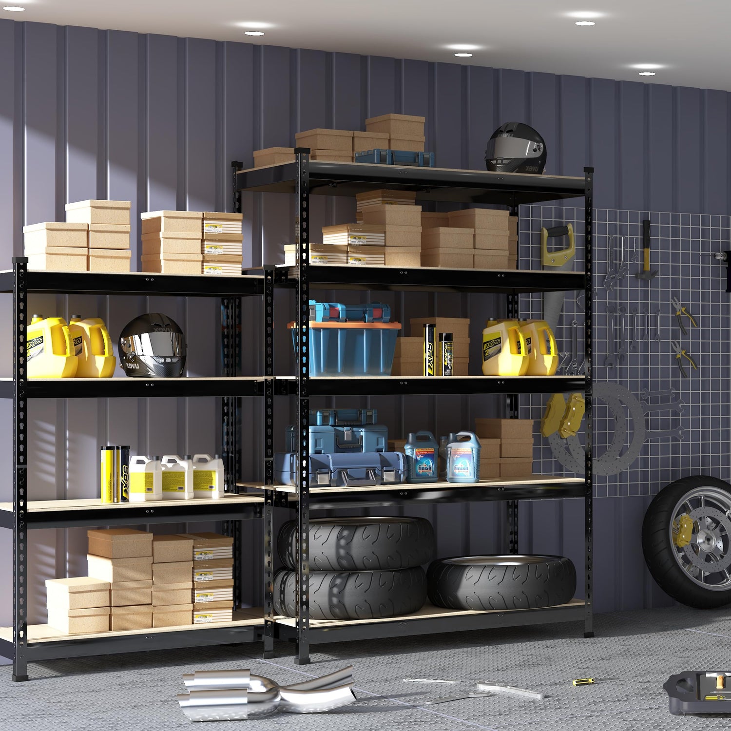 PrimeZone 2 Pack Heavy Duty Adjustable 5 Tier Garage Storage Shelves - 47" W x 18" D x 71" H, Metal Utility Rack Shelf Unit for Warehouse, Pantry, Closet, Kitchen, Black