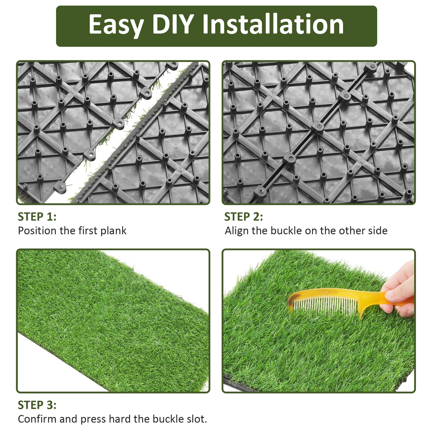 - 【Easy DIY Installation】-Each fake grass tile with an interlocking design that makes installation easy and fun, perfect for DIY lovers. Simply snap the artificial grass tiles together to create a unique and playful outdoor or indoor space that suits your style. It can even be combined with our wood deck tiles.