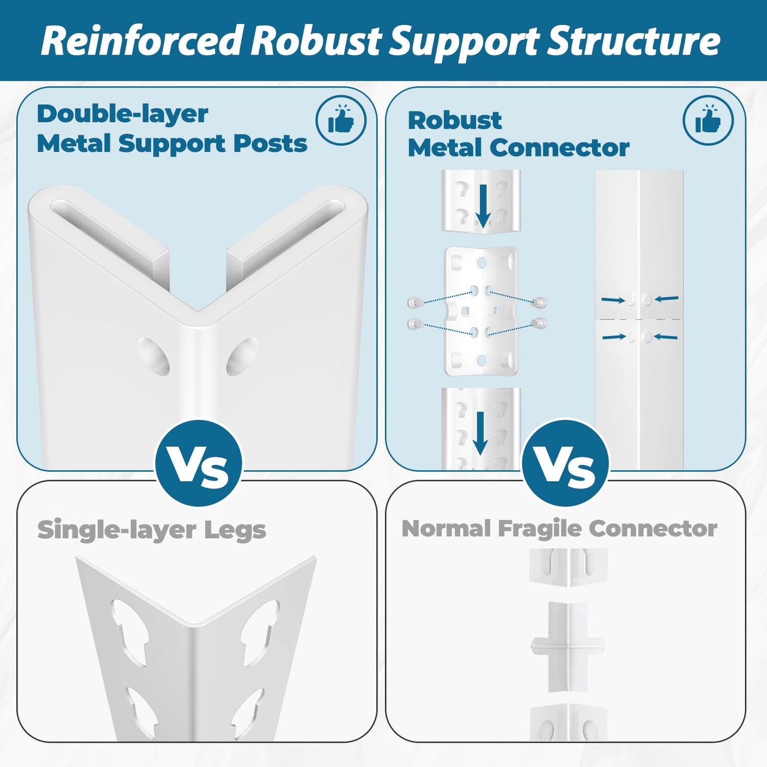 - 【Stronger Metal Connectors】Reinforced metal connectors are designed for long-lasting stability, ensuring that the storage shelf remains stable even when fully loaded. Unlike plastic connectors, our metal connectors are resistant to cracking, warping, and wear over time. For added safety and ease of assembly, we use the locking snaps design that securely fastens the posts together