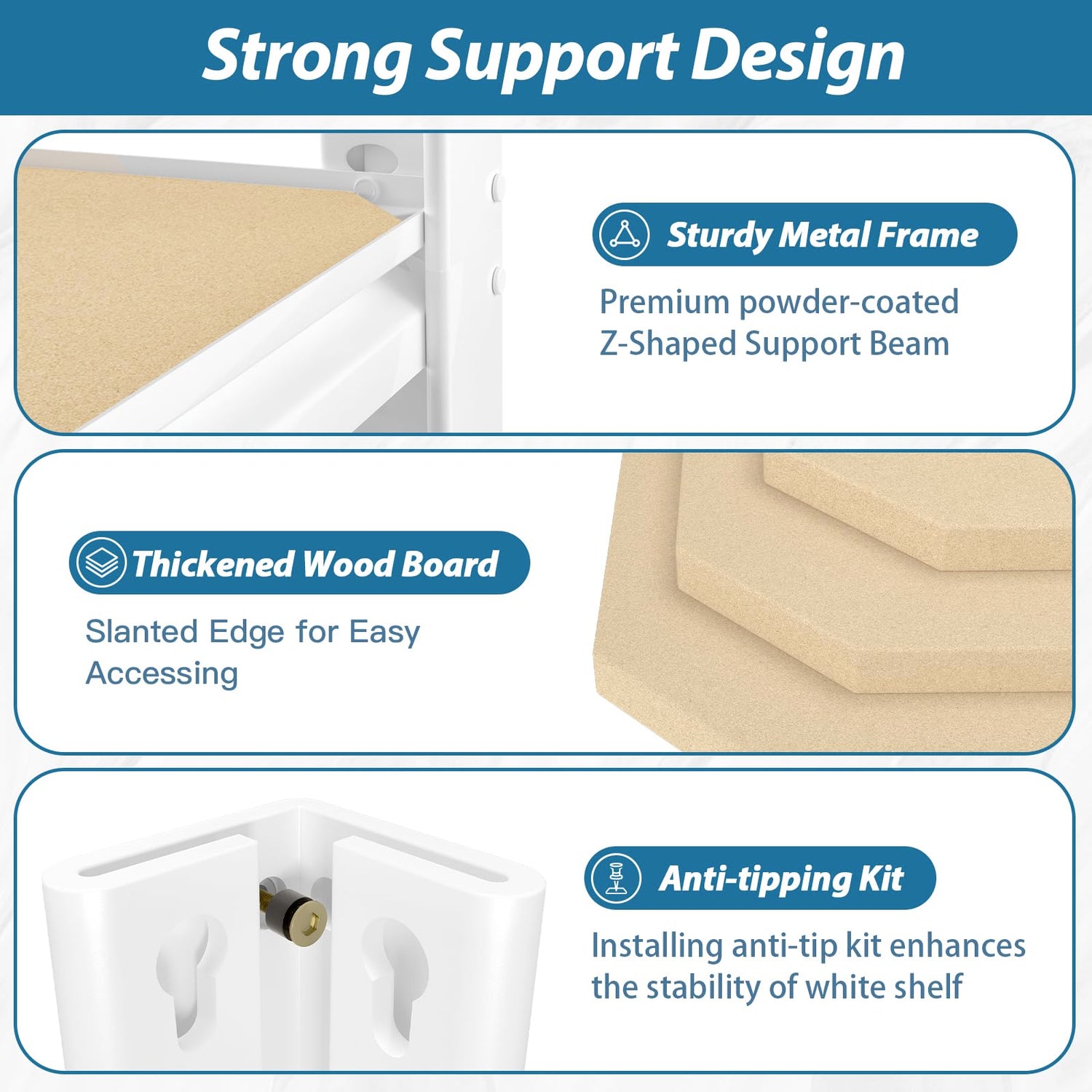 - 【Anti-tip Kits】The anti-tip kits enhance safety and stability when fully loaded