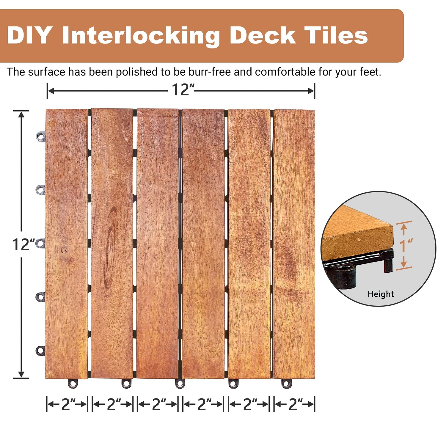 - 【Anti-slip】Our FSC-certified Acacia Wood deck tiles are designed with safety as a priority. The wood-textured surface and diamond-shaped base offer superior traction, ensuring you won't skid or fall while walking. This makes them an ideal choice for high-traffic areas, providing both safety and reliability.