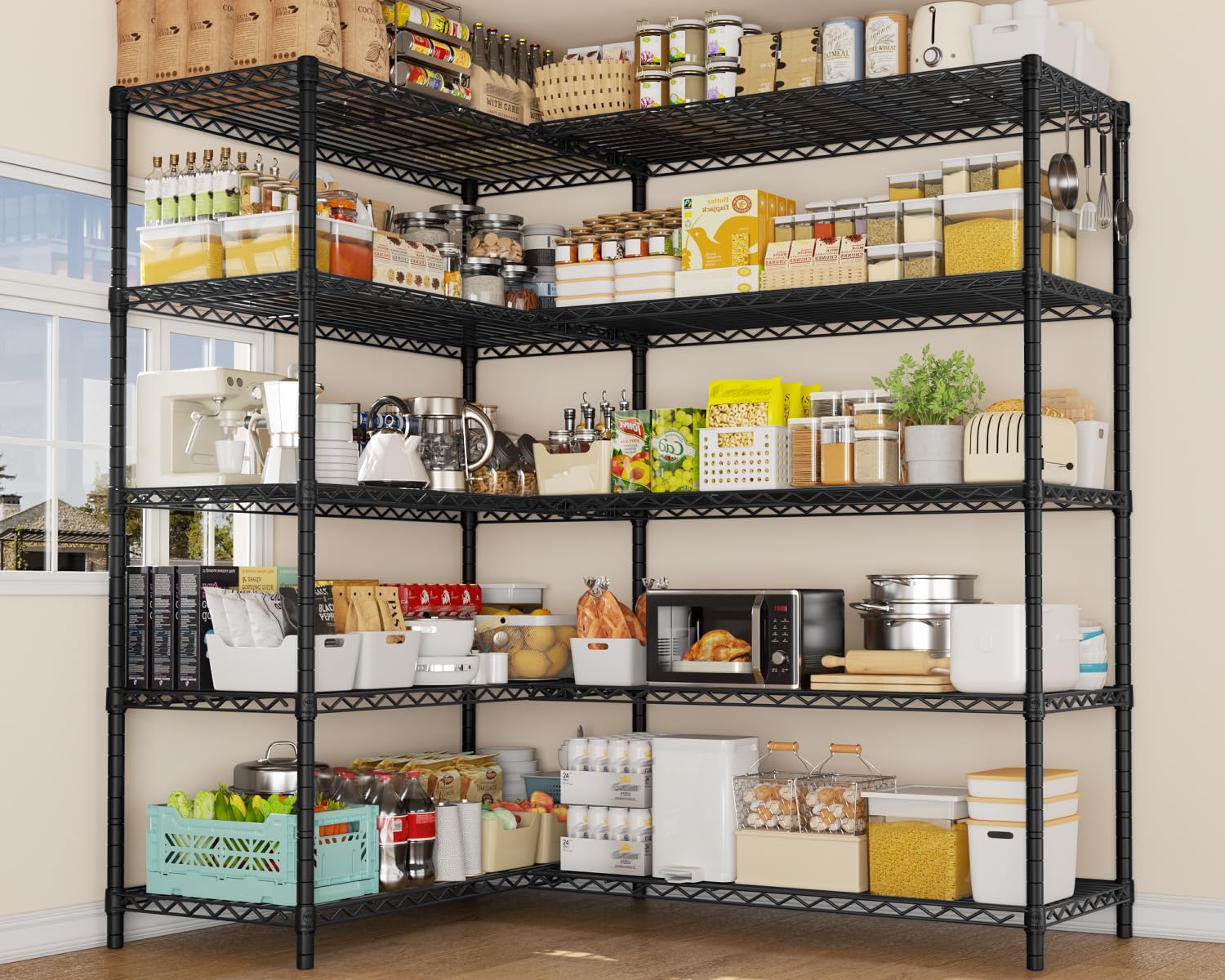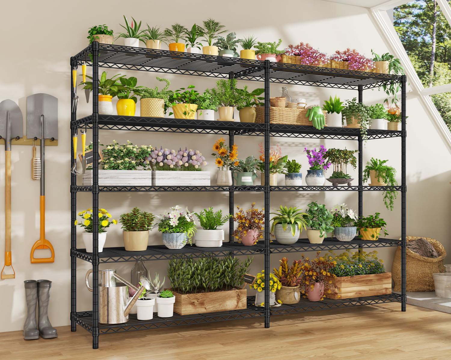 - 【Multi-Purpose Metal Shelves】This garage shelves offer versatile storage options for a wide range. You can use it as a corner shelf, bookshelf, baker's rack, food storage shelves, metal shoe rack, pallet rack, plant shelf, aquarium stand, fish tank stand, garage shelves, and reptile terrarium stand. Whether you need to organize your office supplies, kitchen essentials, pantry items, clothing, or tools in the garage, this heavy duty shelving is designed to meet your needs