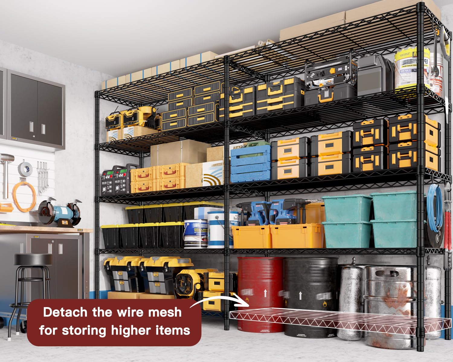 PrimeZone 72" W x 16" D x 76" H Adjustable Garage Shelving, 5 Tier Heavy Duty Metal Storage Shelves, Steel Wire Rack Storage Shelving Organizer for Warehouse, Kitchen, Pantry, Garage, Basement, Black