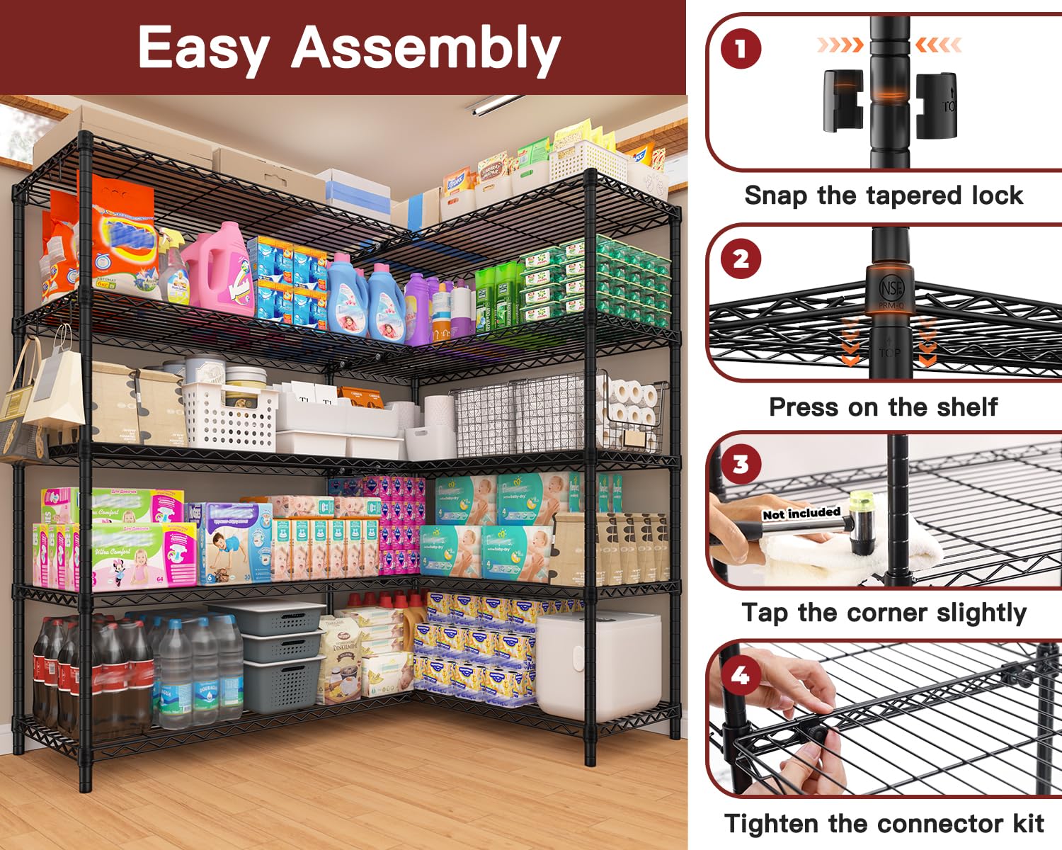 - 【Customizable H / L-Shaped Shelf Organizer】This freestanding utility shelves offer 2 assembly options. The H-shaped wire garage storage rack provides you with a spacious storage space of 70 inches. For small spaces like corners, between cabinets and refrigerators, washers and dryers, desks and walls, it can be assembled into an L-shaped storage shelving to maximize space efficiency