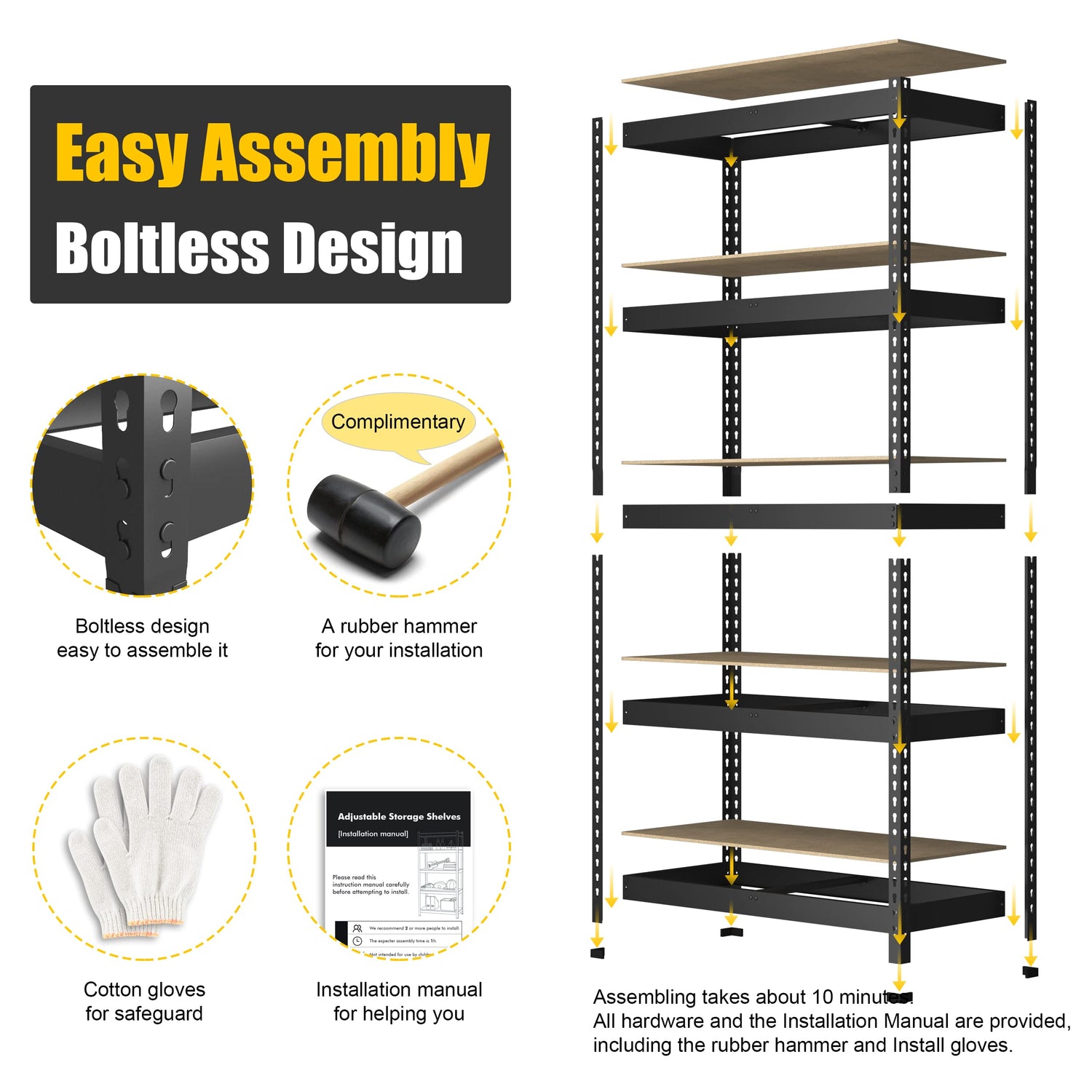 - 【EASY TO ASSEMBLE 】: Due to the boltless design, it is easy to assemble this heavy duty storage rack by lightly pressing it even with your hands or a rubber hammer. Assembling takes approximately 10 minutes. All hardware and the Installation Manual are provided, including the rubber hammer