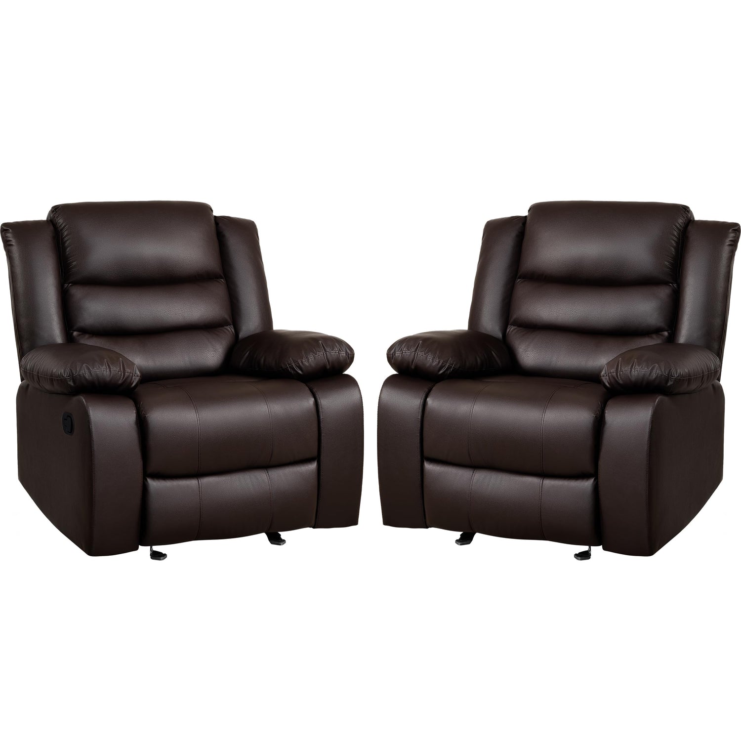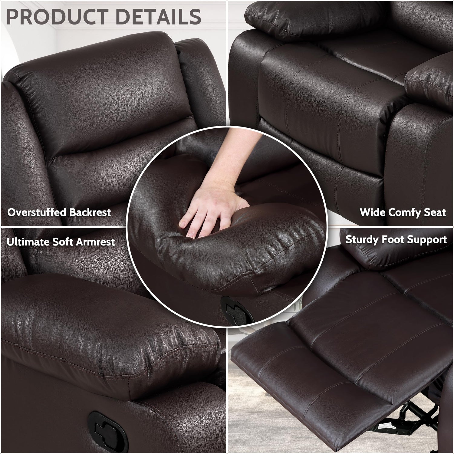 PrimeZone Oversized Rocker Recliner Chair - Comfy Wide Lazy Boy Recliner Chair with Overstuffed Armrest, Faux Leather Manual Reclining Chair for Living Room, Bedroom, Home Theater, Brown Set of 2