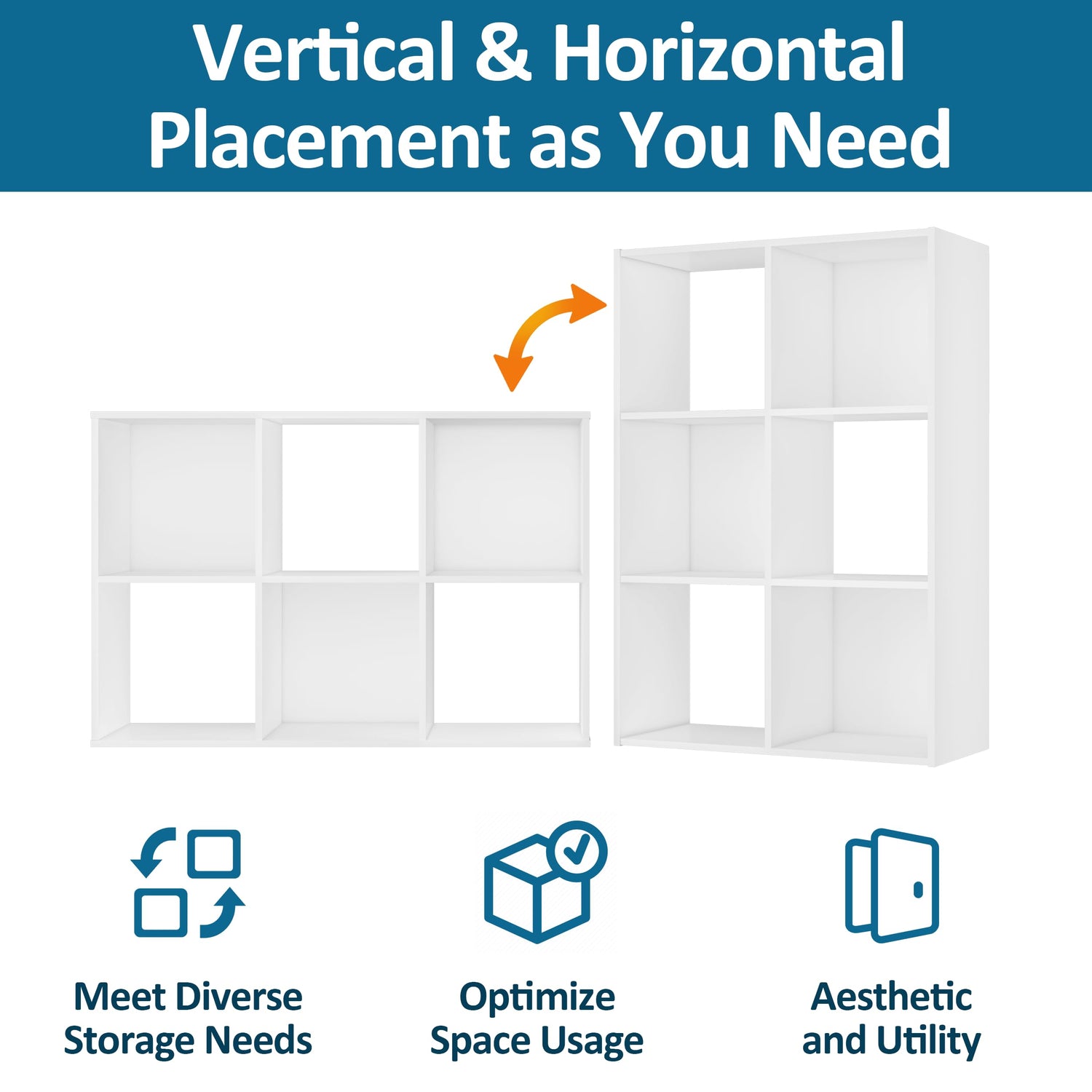 - 【Modular Design for Creative Organization】Maximize compact space with the modular cube storage shelf - perfect for horizontal or vertical setup. This 6 cubicle shelf is stackable, or combined with 8 or 9 cubby units to build a creative storage wall, closet cube organizer, bookcase, room divider. It's the perfect toy organizer for kids' rooms, a sleek entryway shelf for shoes and bags, or display shelves for your favorite photos and decor.