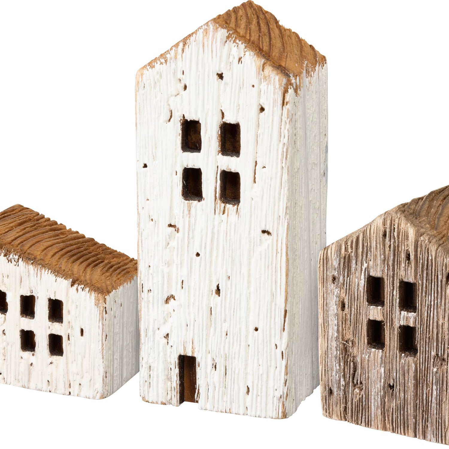 Primitives by Kathy Set of 3 Rustic Wooden House Figurines