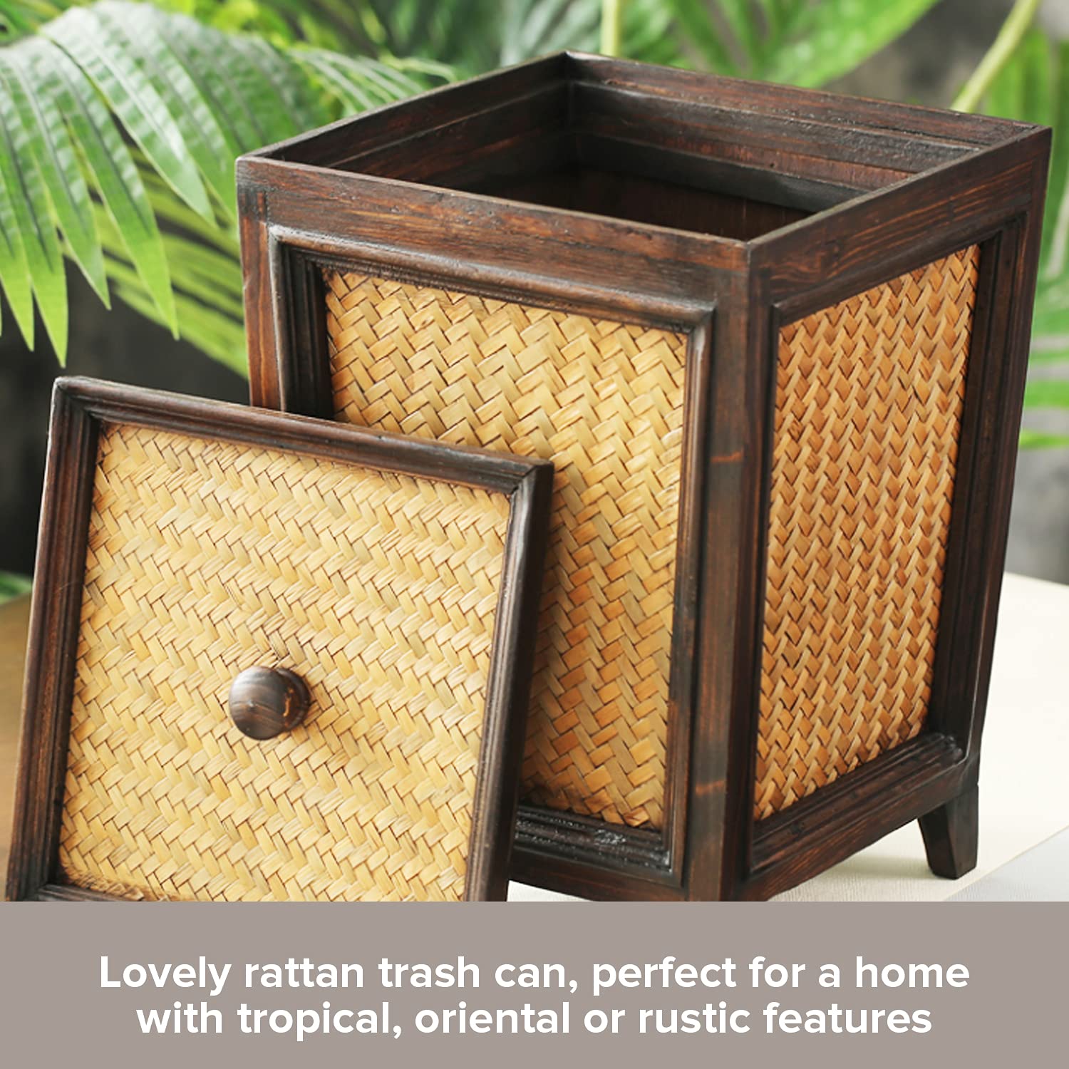 - Simple & Stylish Wood Trash Can for Home or Business: While they do hold rubbish, trash cans don't have to look messy or dirty. In fact, people are encouraged to do responsible waste disposal when recycling bins or garbage cans are neat & pleasing to the eye--exactly like our rattan wooden trash bin. Well crafted to double as a nice addition to your home decor, use this compact trash can even in your office or place of business