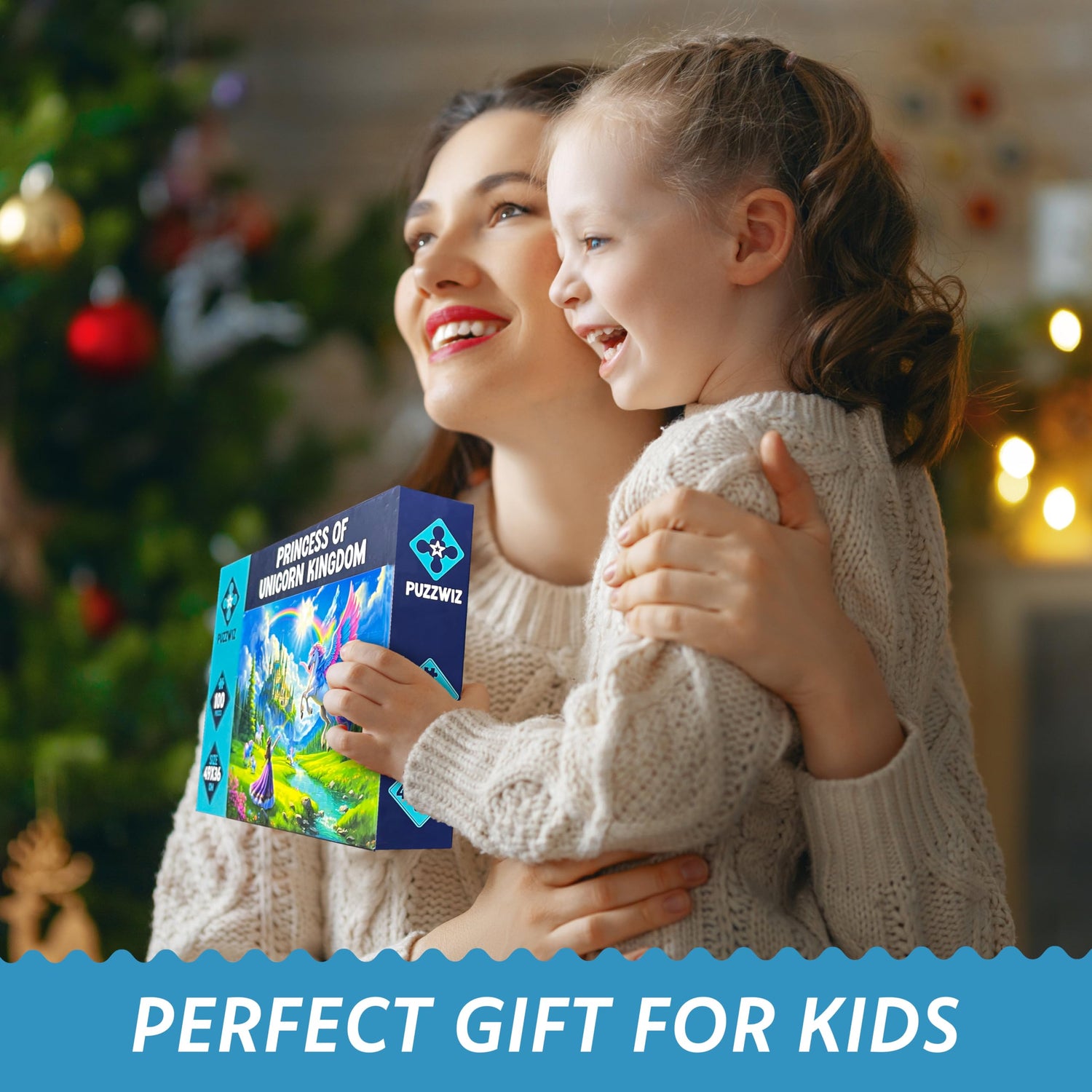 - Captivating Puzzle: This 100-piece best puzzles jigsaw beautifully captivate children, with its bright, engaging colors of Unicorn Image, while fostering focus, patience, and hand-eye coordination through manipulative play and problem-solving.This vibrant 100-piece jigsaw puzzle brings the enchanting world of unicorns, rainbows, and enchanting castles to life. Each piece reveals a portion of the vivid scene, where a majestic unicorn soars above a sparkling stream, surrounded by lush greenery and adorable baby unicorns.