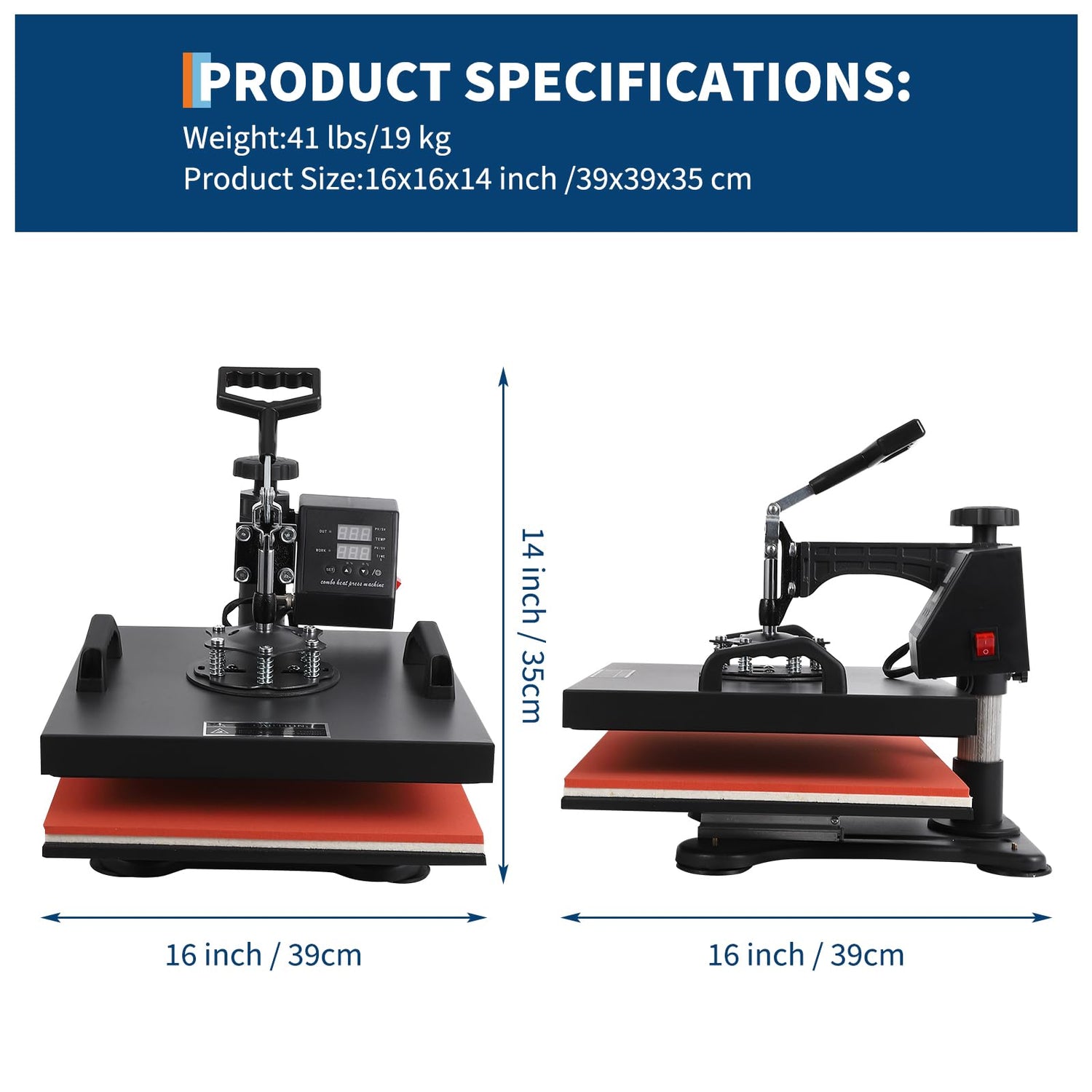 - Perfect for Home Crafters or Small Business: With its adjustable pressure knob and multi-surface compatibility, this heat press is ideal for hobbyists, creators, and entrepreneurs alike. Easily personalize t-shirts, mugs, tumblers, hats, plates, and more on a wide range of materials including cotton, fiber, metal, ceramics, and glass.
