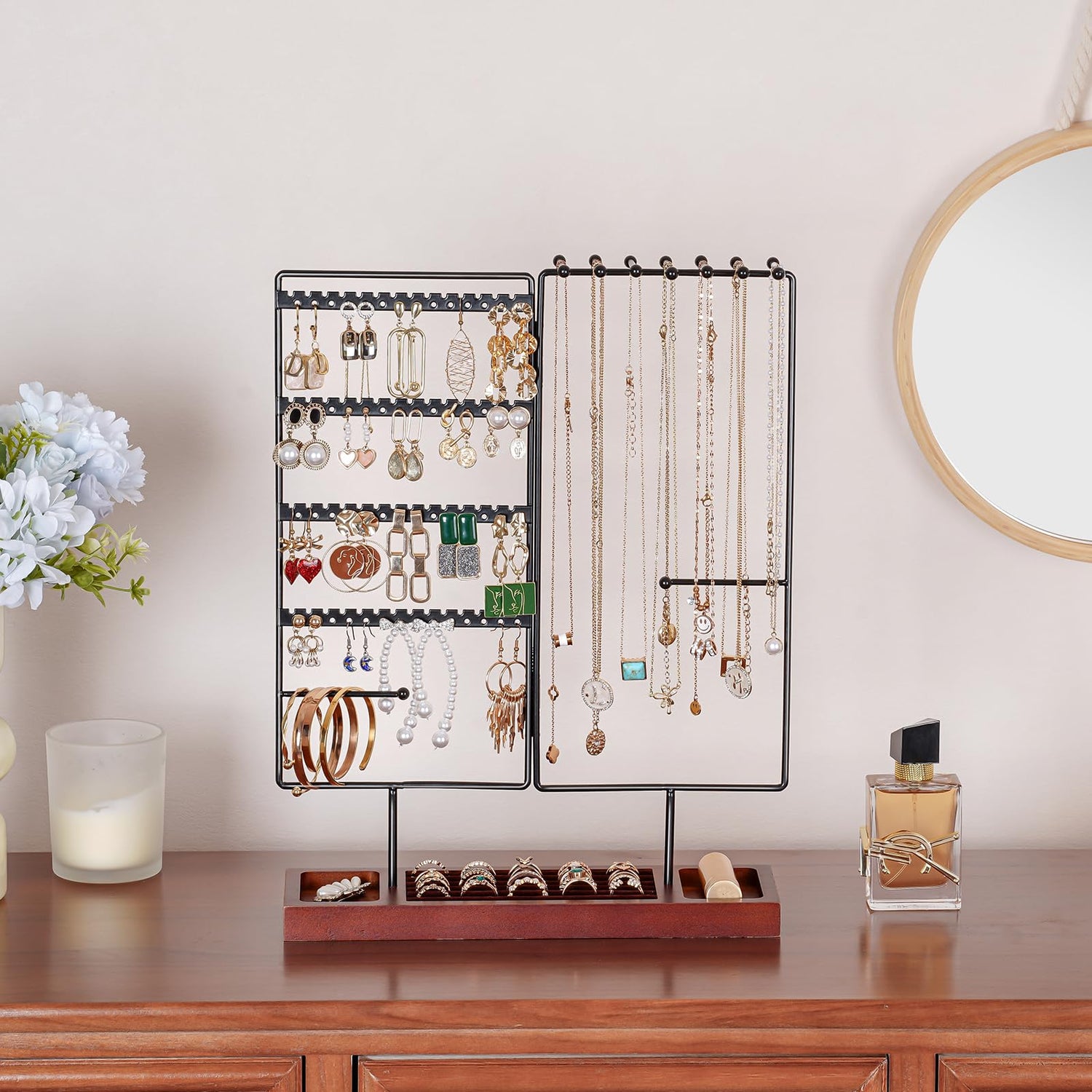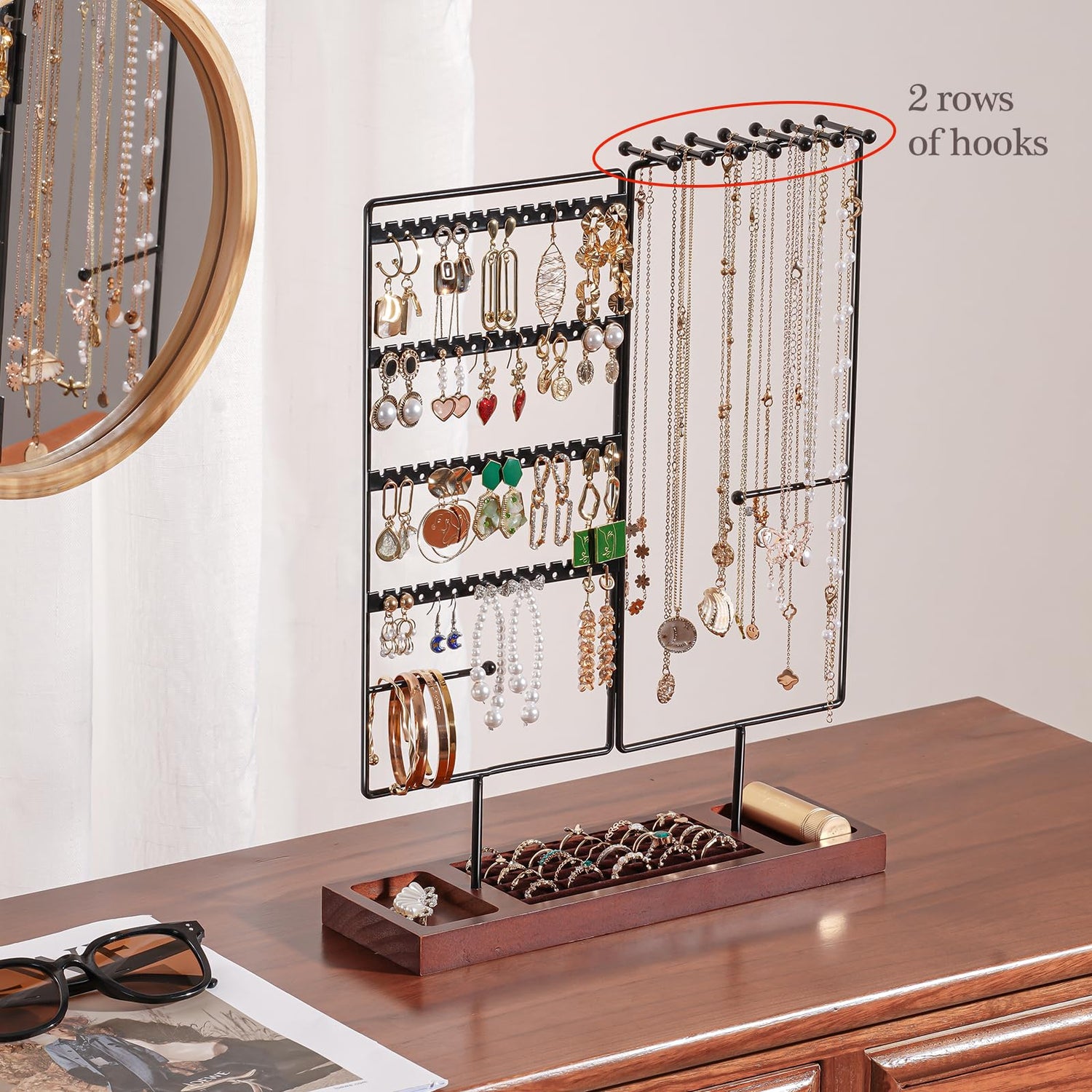 - 144 Earring Holes - Can hold a dozen earrings along with several necklaces and bracelets, so much easier and faster to see what you have, access everything very easily unlike jewelry box; No more tangled necklaces or hunting for a matching earring