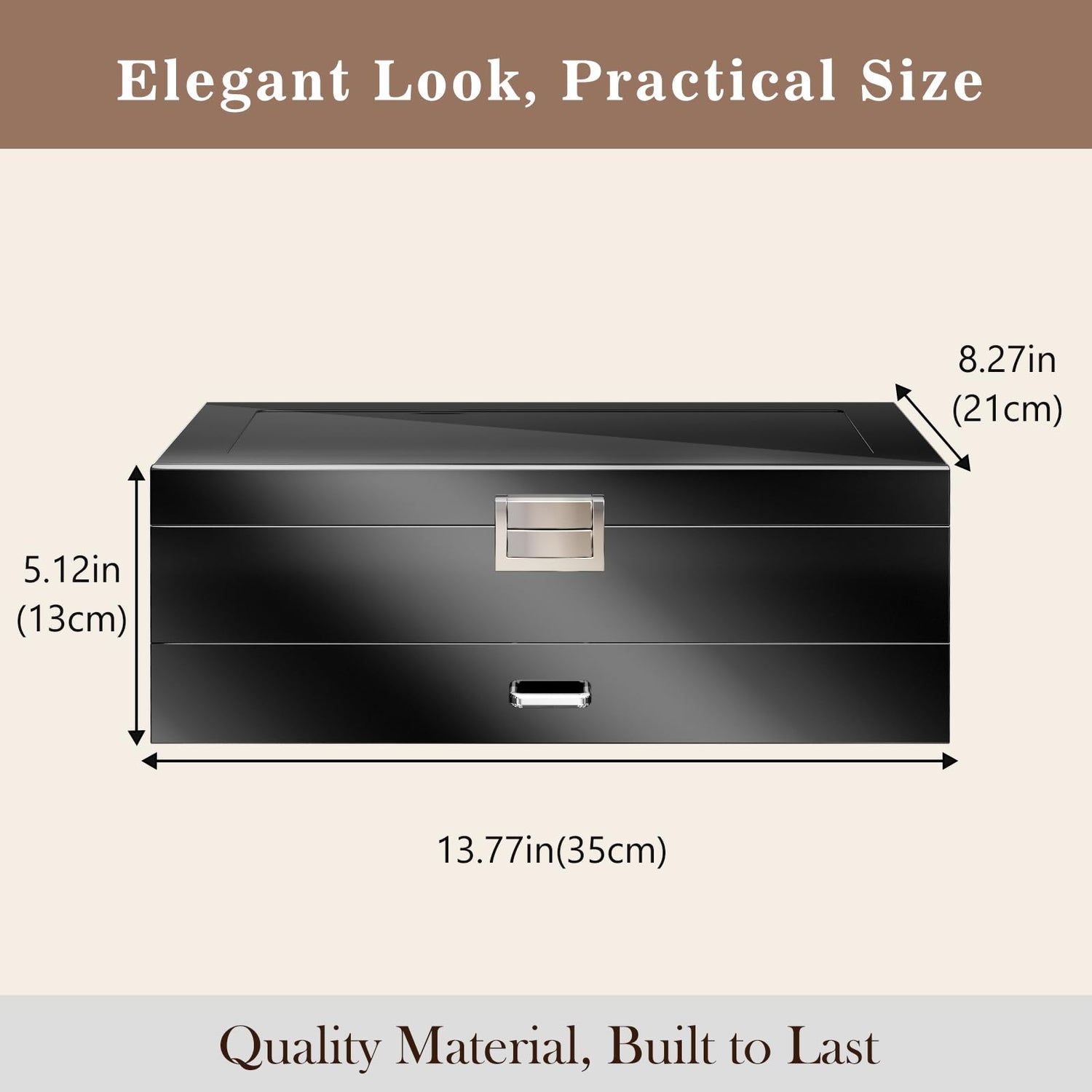 ProCase Wooden Men's Jewelry Box, 2-Tier Watch Holder and Sunglasses Box Organizer for Men, Display Cases with Clear Glass Top and Storage Drawer, Father's Day Gift -Black