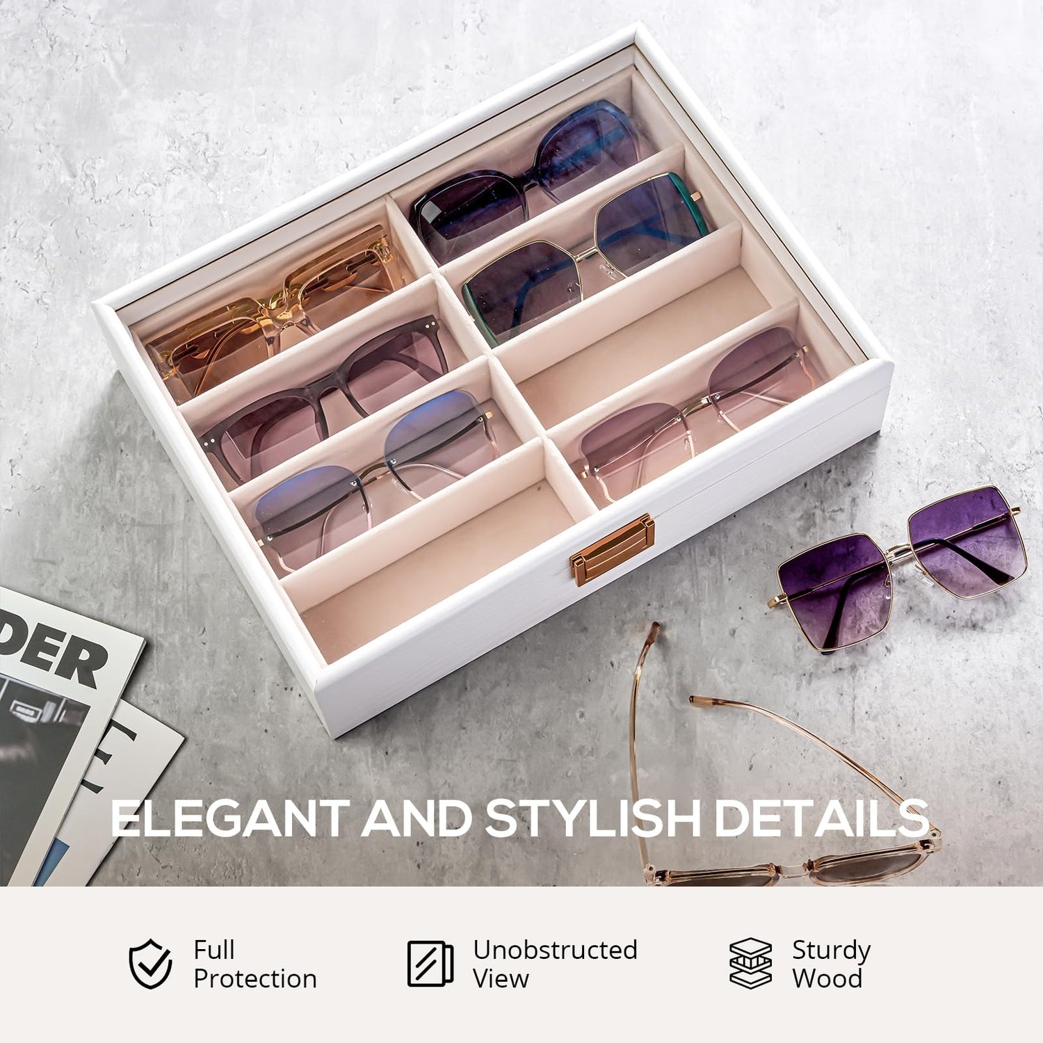 ProCase Sunglass Organizer with woodgrain finish have 8 storage compartments for your Eyeglasses. Full display of clear glass meet your need to display and organizer glasses