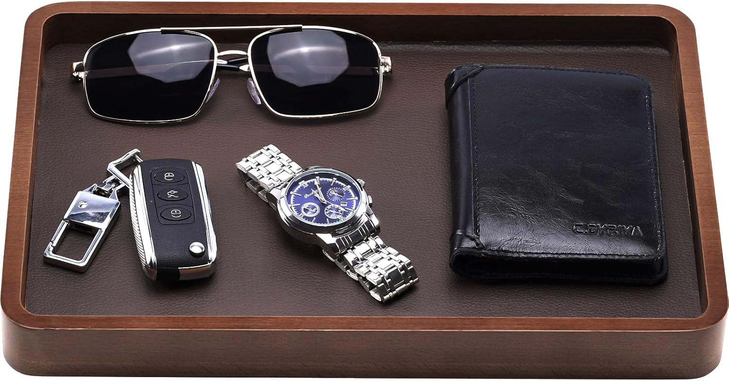 ProCase Wooden Valet Tray for Men, Wood Catch-All EDC Organizer, Nightstand, Entryway Bedside Dump Holder, for Wallets, Keys, Watches, Phones, Loose Change, Trinkets -DarkBrown