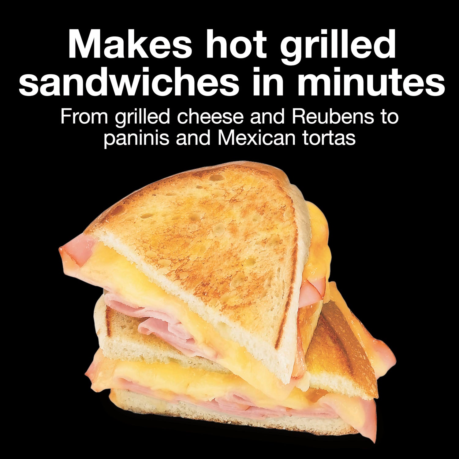 • MAKES HOT GRILLED SANDWICHES IN MINUTES: With 700 watts, the grilled sandwich maker easily and quickly makes hot grilled sandwiches of varied thicknesses, from grilled cheese and Reubens to paninis and Mexican tortas in under 5 minutes.