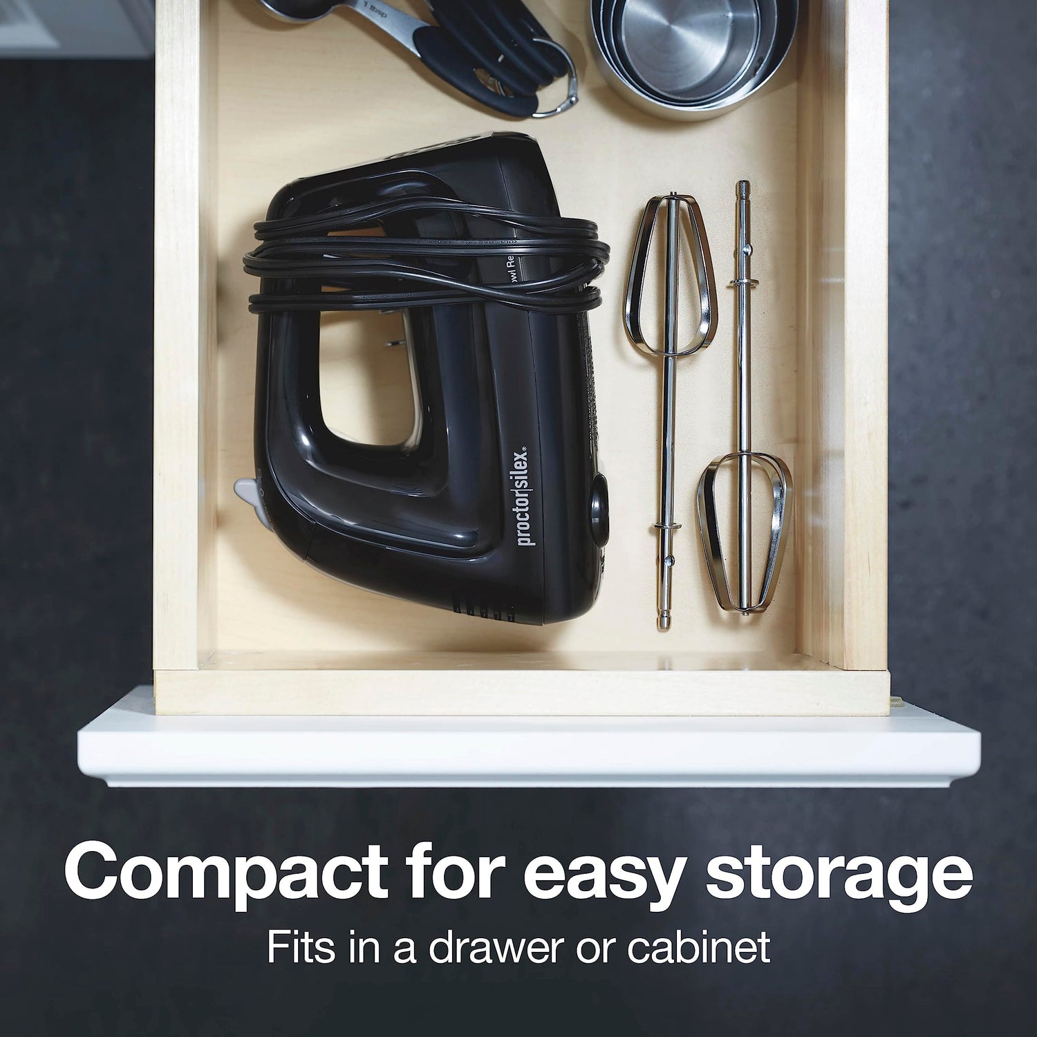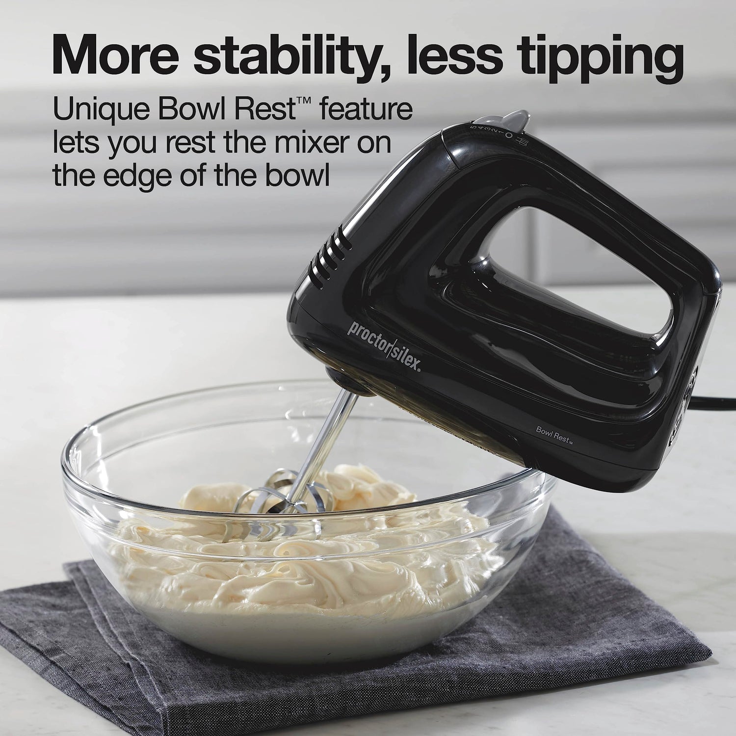 Proctor Silex Easy Mix 5-Speed Electric Hand Mixer with Bowl Rest, Compact and Lightweight, 100 Watts of Peak Power, Black (62511)