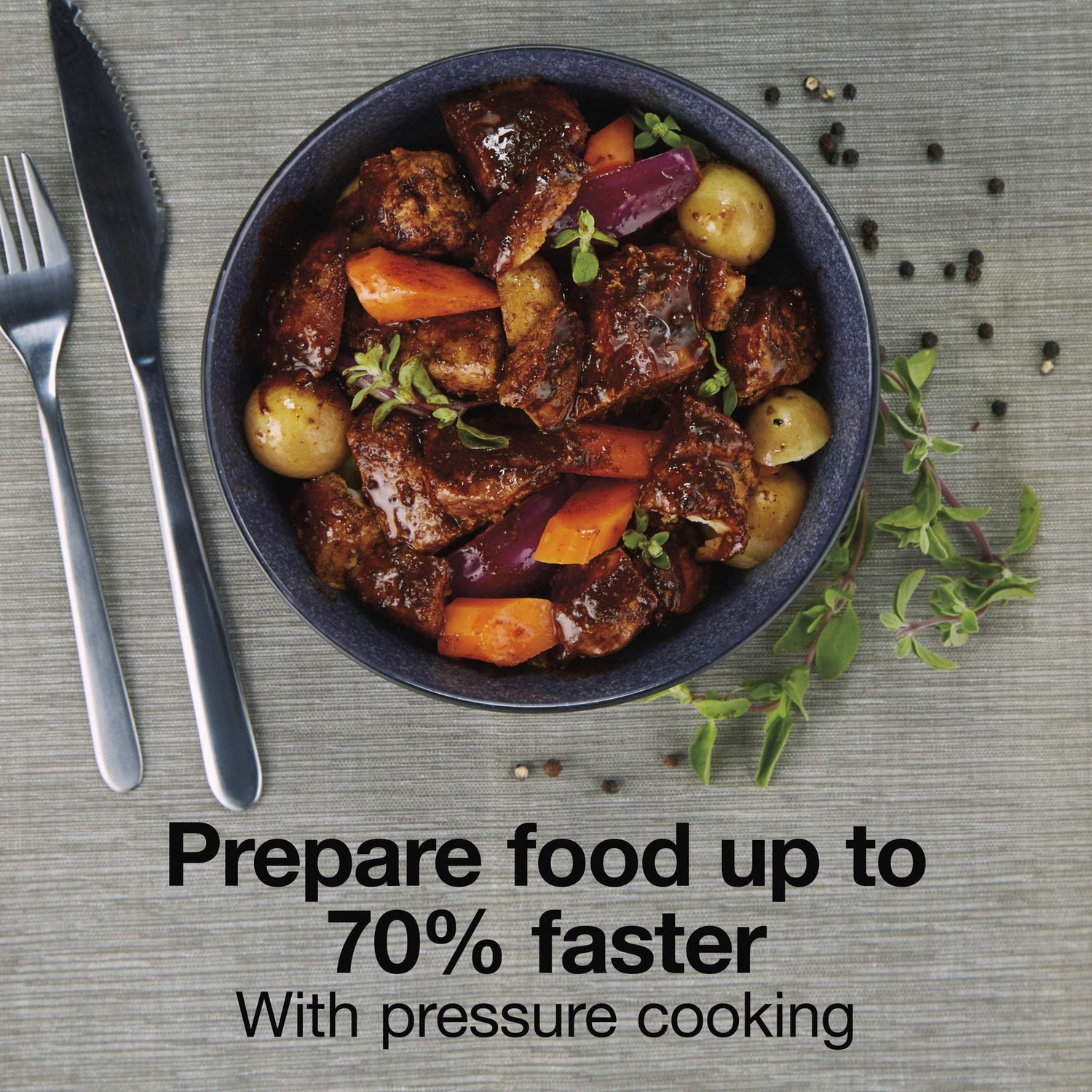 - PREPARE FOOD UP TO 70% FASTER: With pressure cooking, you'll get dinner on the table faster than you ever thought possible. Prepare food up to 70% faster with pressure cooking in this 3 quart pressure cooker.