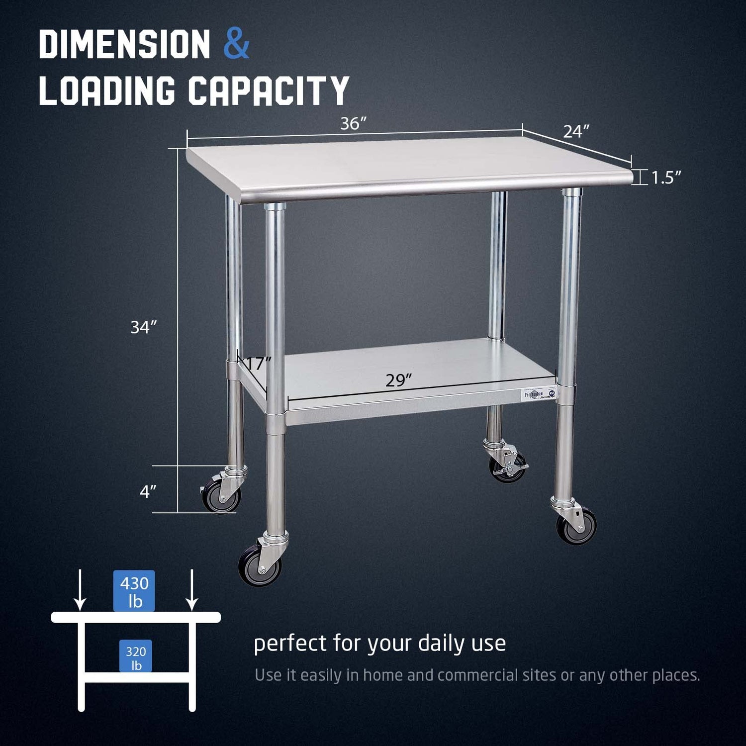 - Premium Stainless Steel: Made of 18 gauge Type 430 stainless steel, this work table is NSF certified to meet stringent public health standards and regulations. It is resistant to corrosion and rust, beautiful and practical, and durable. The food-grade stainless steel surface, is flat and smooth, which is easy to clean and sterilize