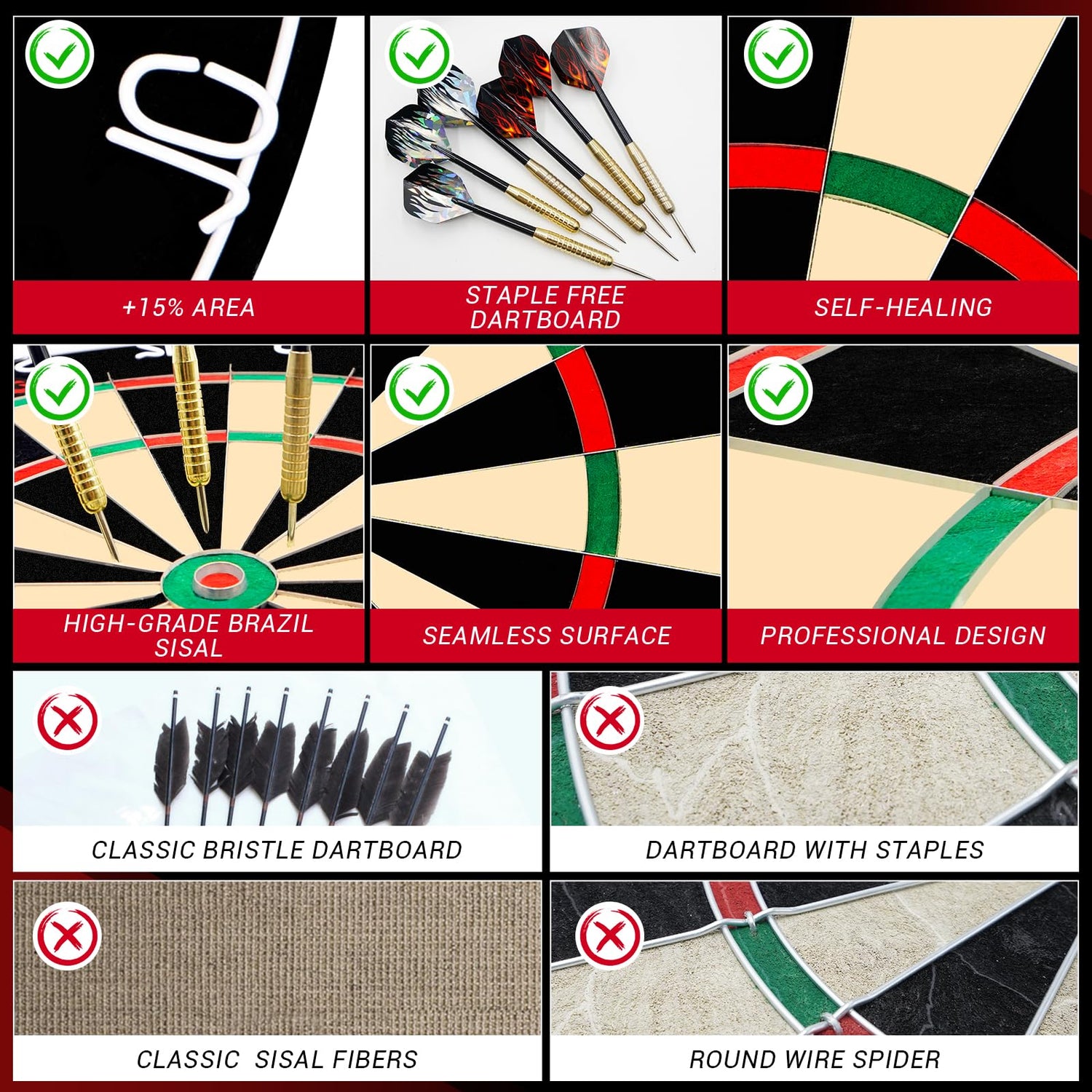 - ✔【SELF-HEALING SISAL FIBERS】High grade compressed sisal fibers heal over time which is from Kenya, ensuring your dart board is more durable. This steel tip dart board is suitable for in bar, office, game room, garage etc.