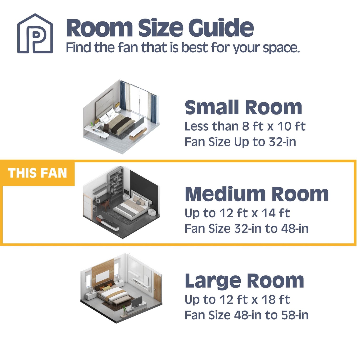 - Indoor Ceiling Fan Cools Smaller Rooms: This 42 inch indoor fan is ideal for indoor spaces up to 100 sq. ft., such as guest bedrooms, offices, kitchens, and dens; In winter, reverse this fan's direction to circulate warm air on low speed