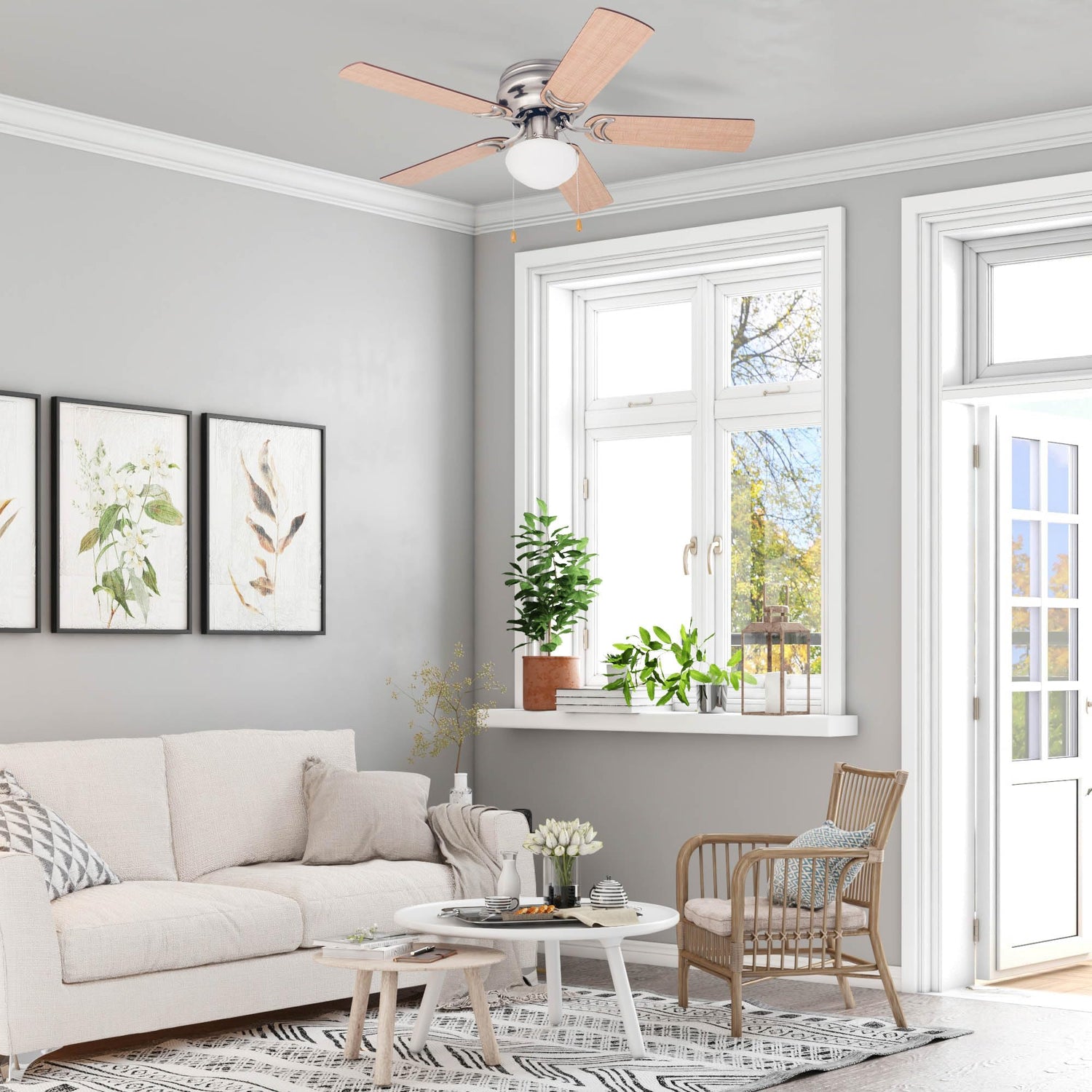 - Stylish, Functional Design: This flush mount ceiling fan offers a chic low-profile hugger-mount design built for rooms with low ceilings; The 5 sleek, dual-finish blades feature 2 modern color options, Walnut Brown and Maple Brown, for easy decor updates