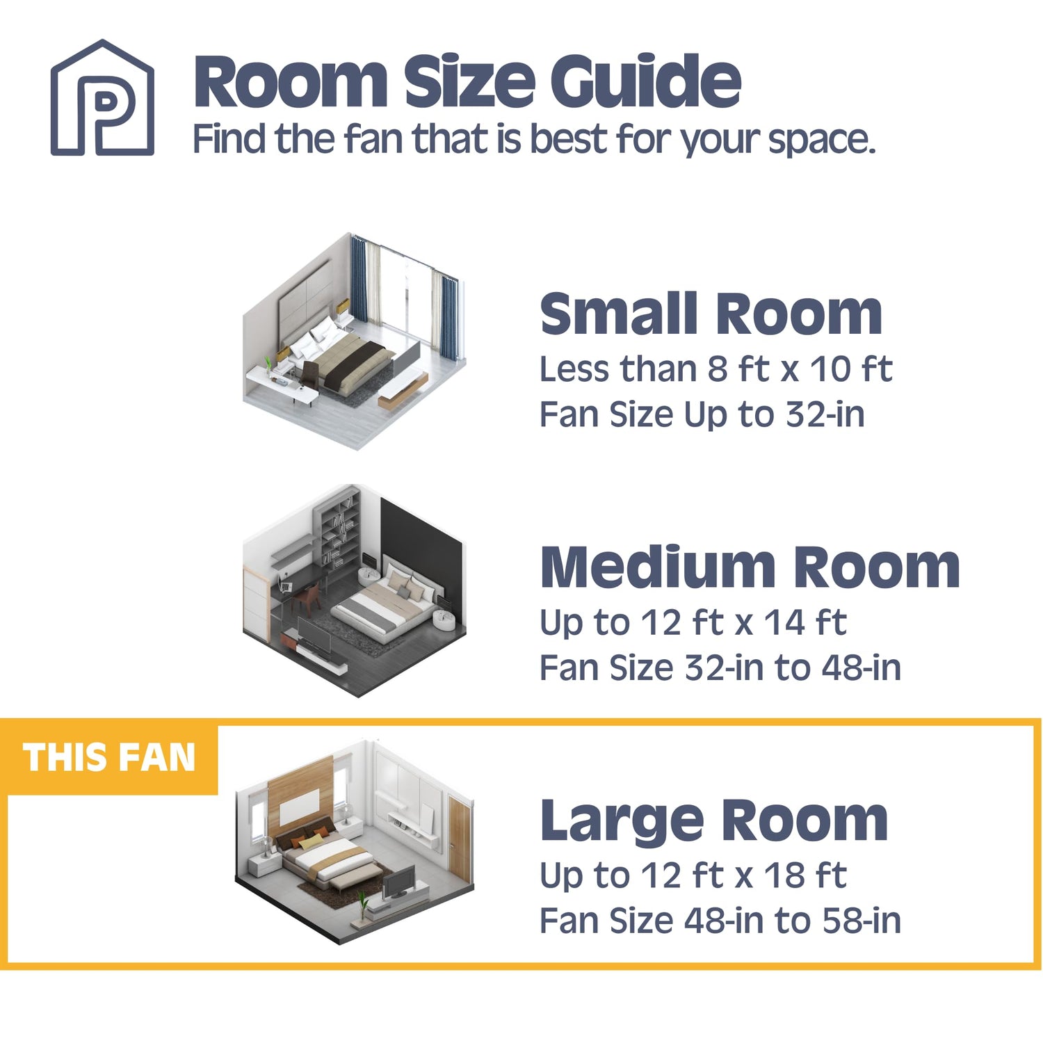 - Indoor Ceiling Fan Cools Medium to Large Rooms: This 52 inch ceiling fan is ideal for indoor spaces up to 400 sq. ft., such as bedrooms, living rooms, and dining rooms; In winter, reverse this fan's direction to circulate warm air on low speed