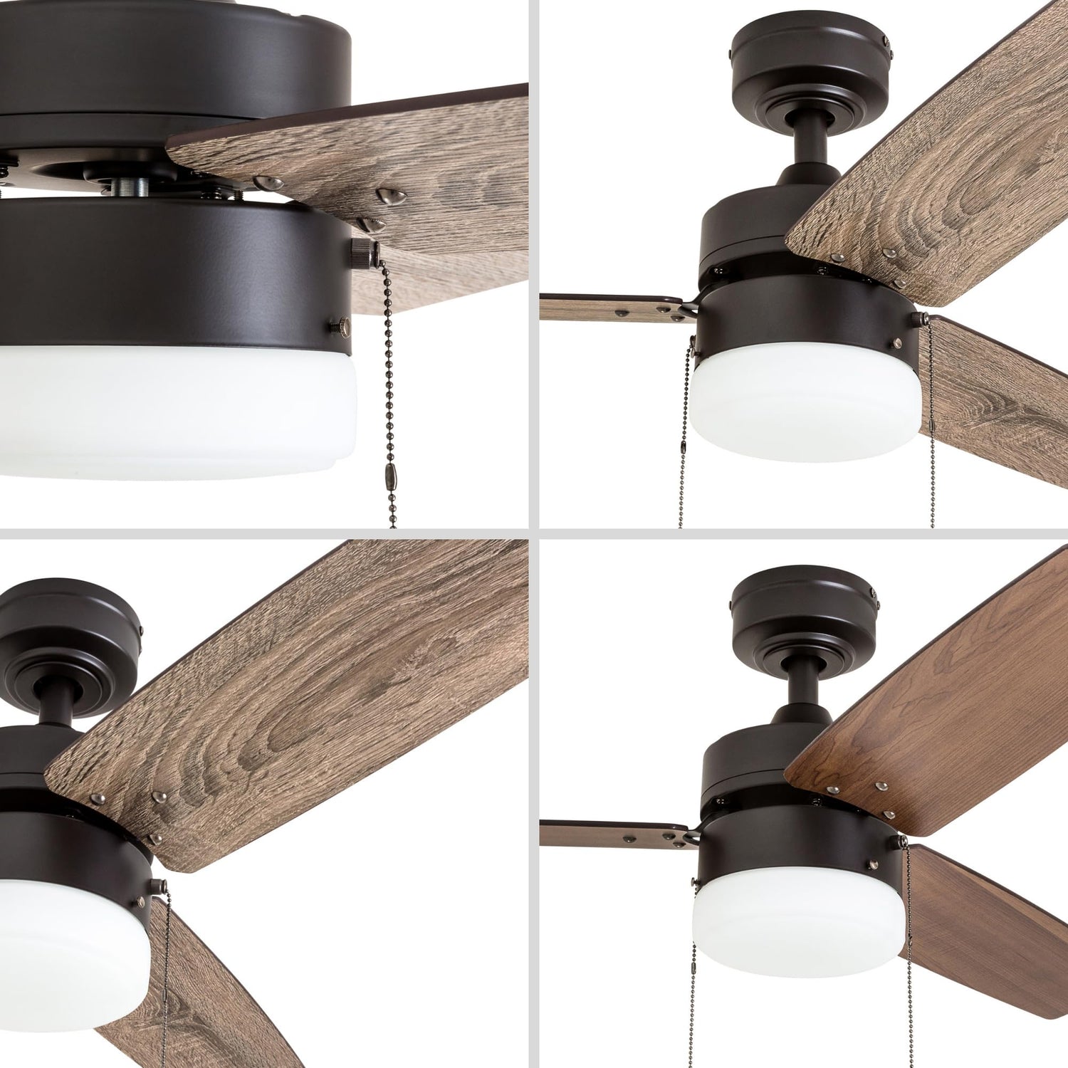 Prominence Home Reston, 42 Inch Modern Farmhouse LED Ceiling Fan with Light, Pull Chain, Dual Mounting Options, Dual Finish Blades, Reversible Motor - 51015-01 (Bronze)