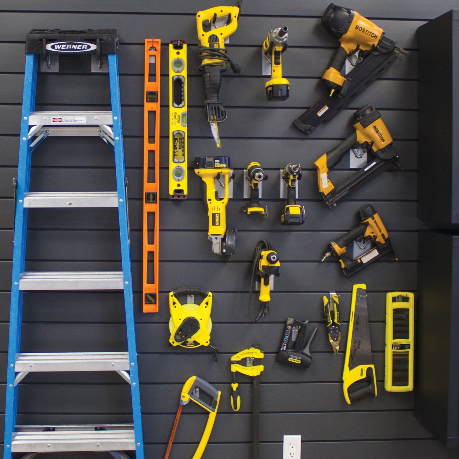 Proslat Garage Storage PVC Slatwall Panels - 2 Packs of 8 ft. x 4 ft. Sections (20 Single slats which Make up 64 sq.ft Once Installed) (Charcoal) (Dark Gray)