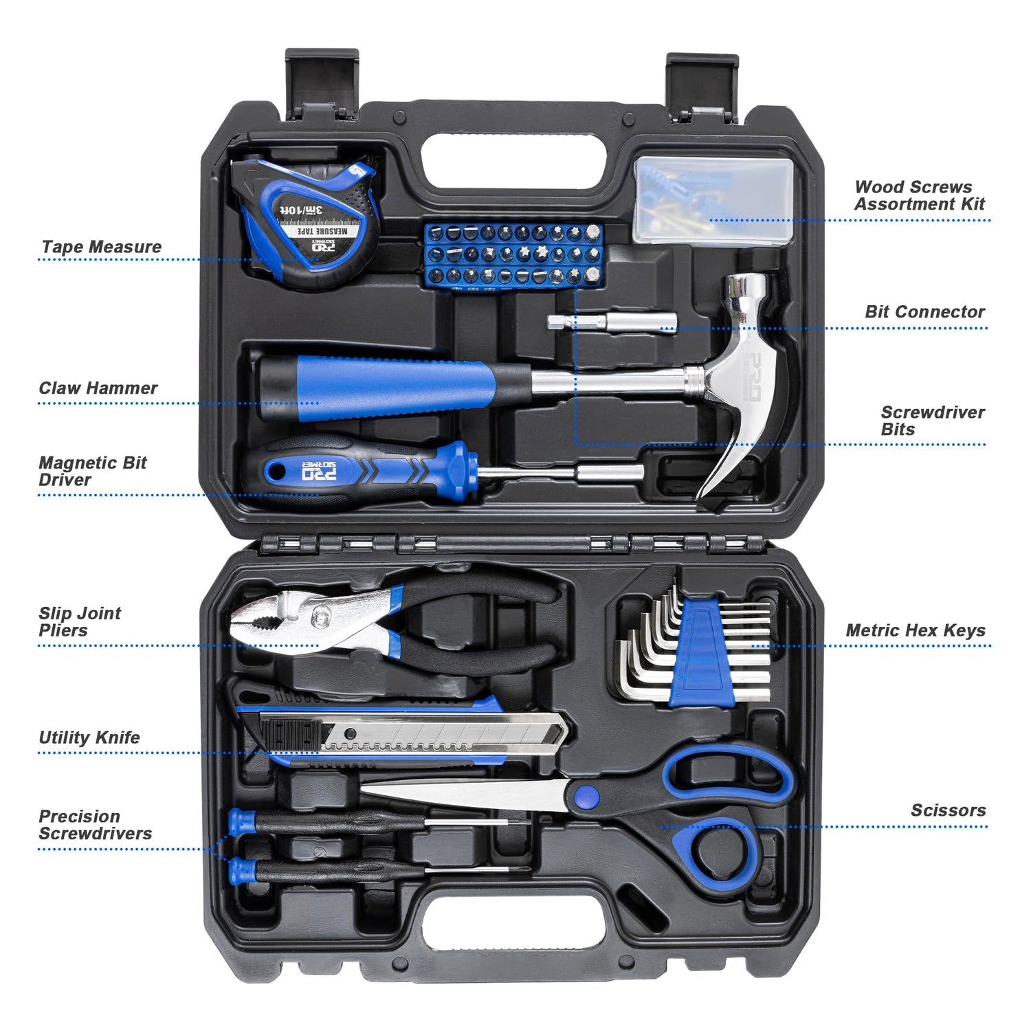 - [Muti-Purpose Tools Kit] - 93Pcs tools set for everyday household small repair jobs and DIY projects. It is perfect hand tool kit to have at home, garage, office, dorm, apartment.