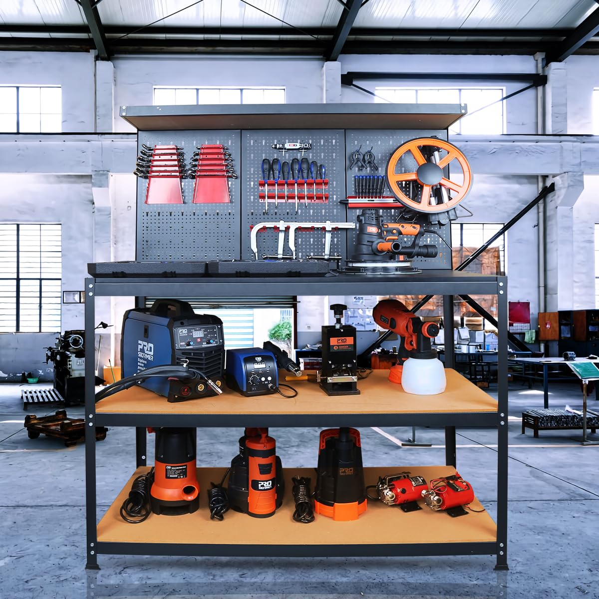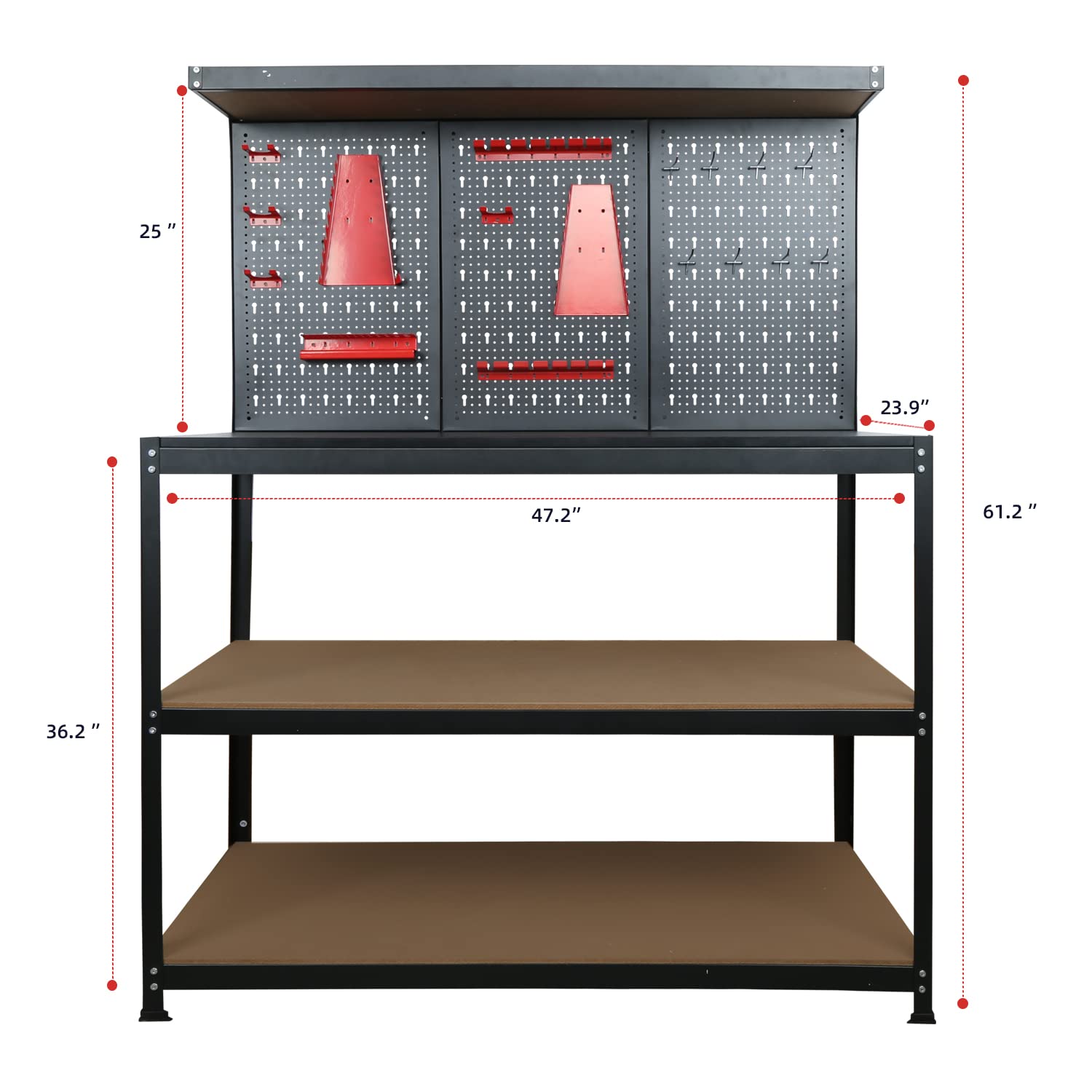 Prostormer Workbench, 47.25 inch Multipurpose Garage Worktable with Peg Board Hook Kit for Home, Garage, and DIY Projects