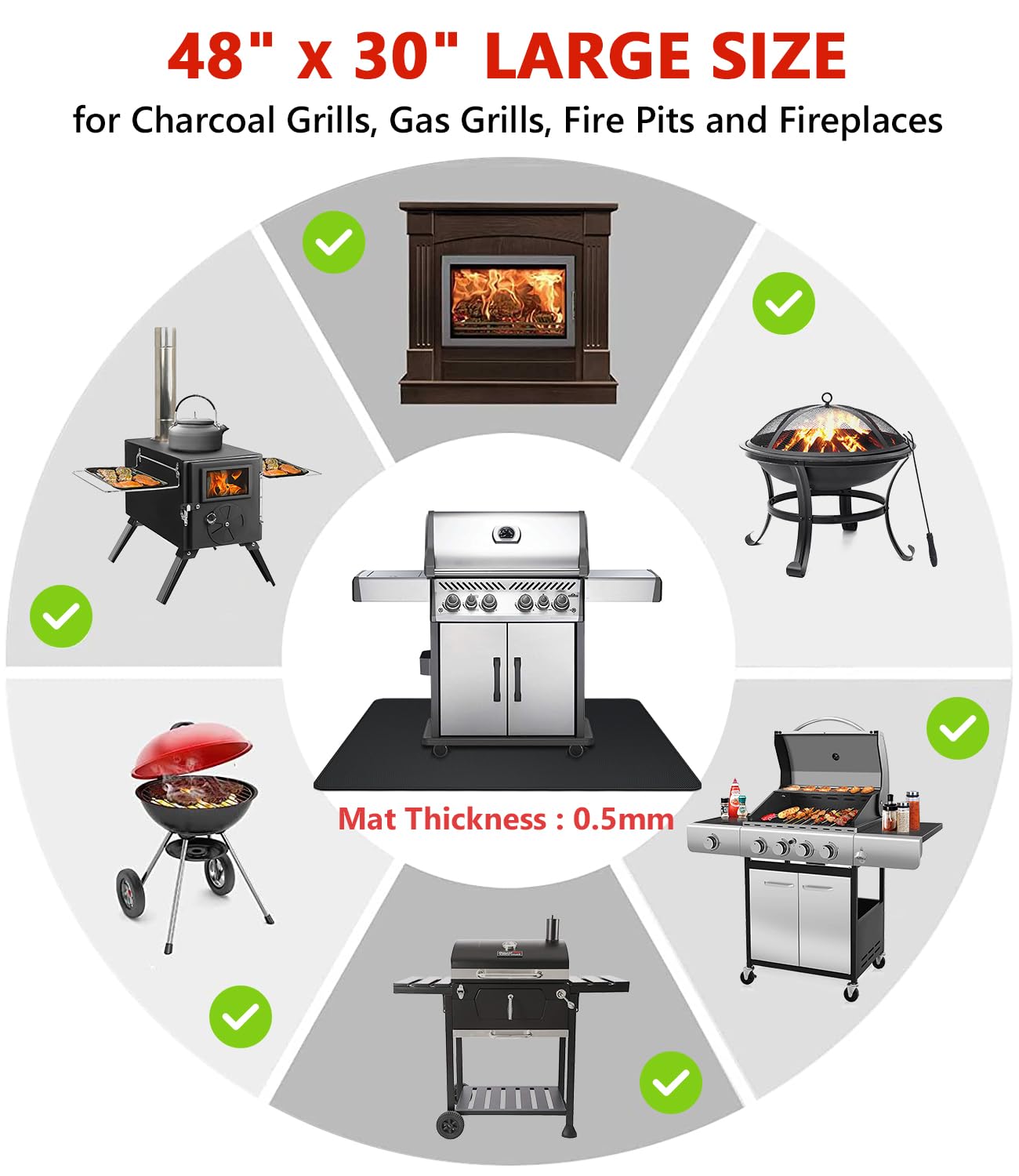 Protebox 48 x 30 inch Under Grill Mats for Outdoor Grill, Double-Sided Fireproof Deck and Patio Protector Mat, BBQ Mat for Under BBQ, Waterproof Oil-Proof Grill Floor Pads Fire Pit Mat Fireplace Mat