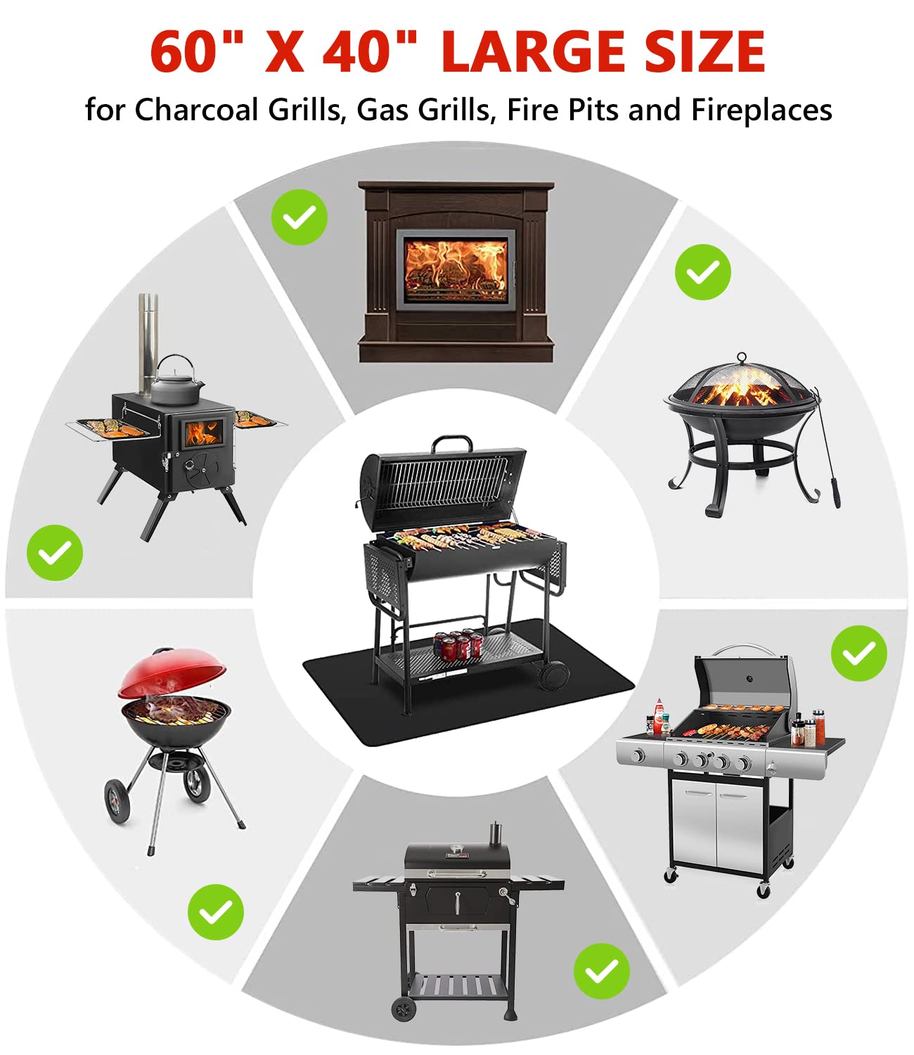 Protebox 60 x 40 inch Under Grill Mats for Outdoor Grill, Double-Sided Fireproof Deck and Patio Protector Mat, BBQ Mat for Under BBQ, Waterproof Oil-Proof Grill Floor Pads Fire Pit Mat Fireplace Mat