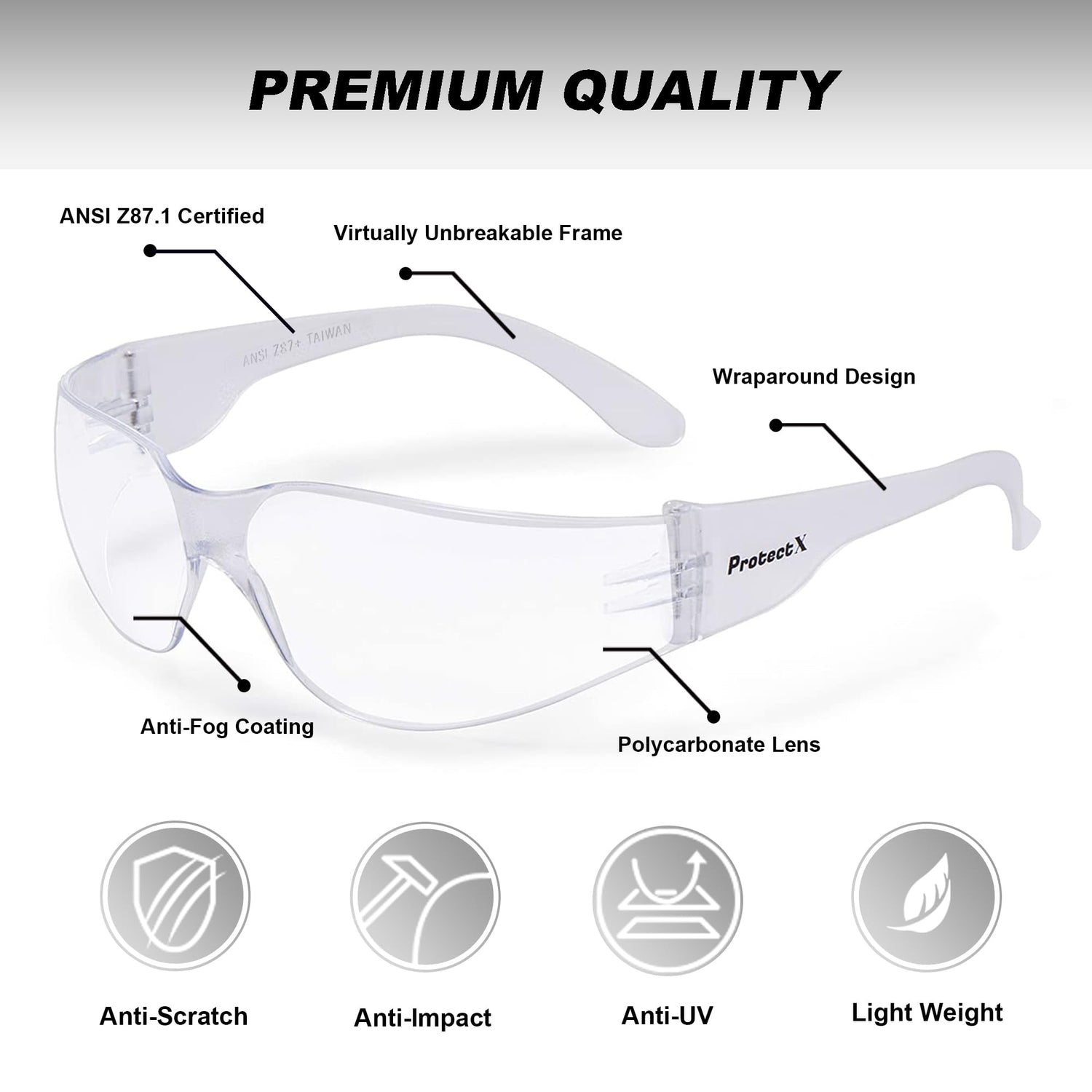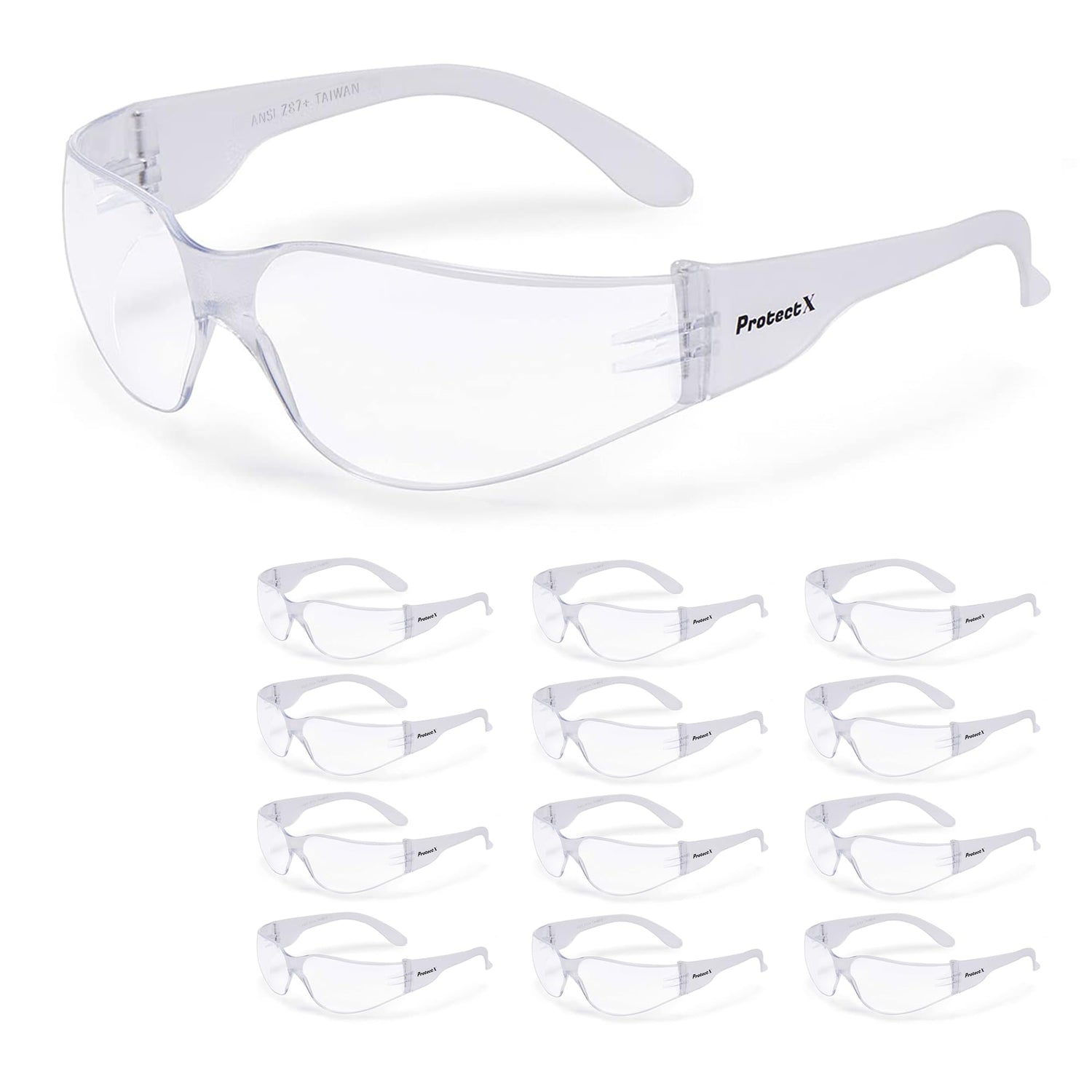 ProtectX 12 Pack Clear Anti Fog Safety Glasses, Protective Eyewear for Men Women, ANSI Z87.1 Impact Resistant Wrap-Around Lenses, Eye Protection for Work, Lab, Construction