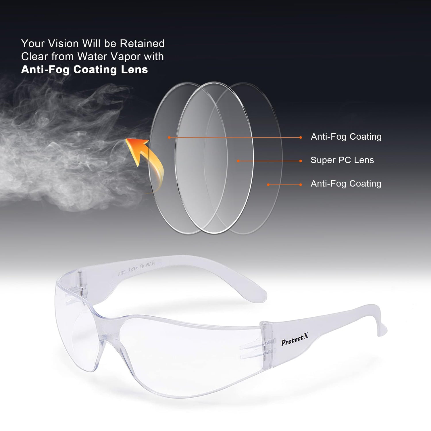 • ANTI FOG: Treated lens to prevent fogging